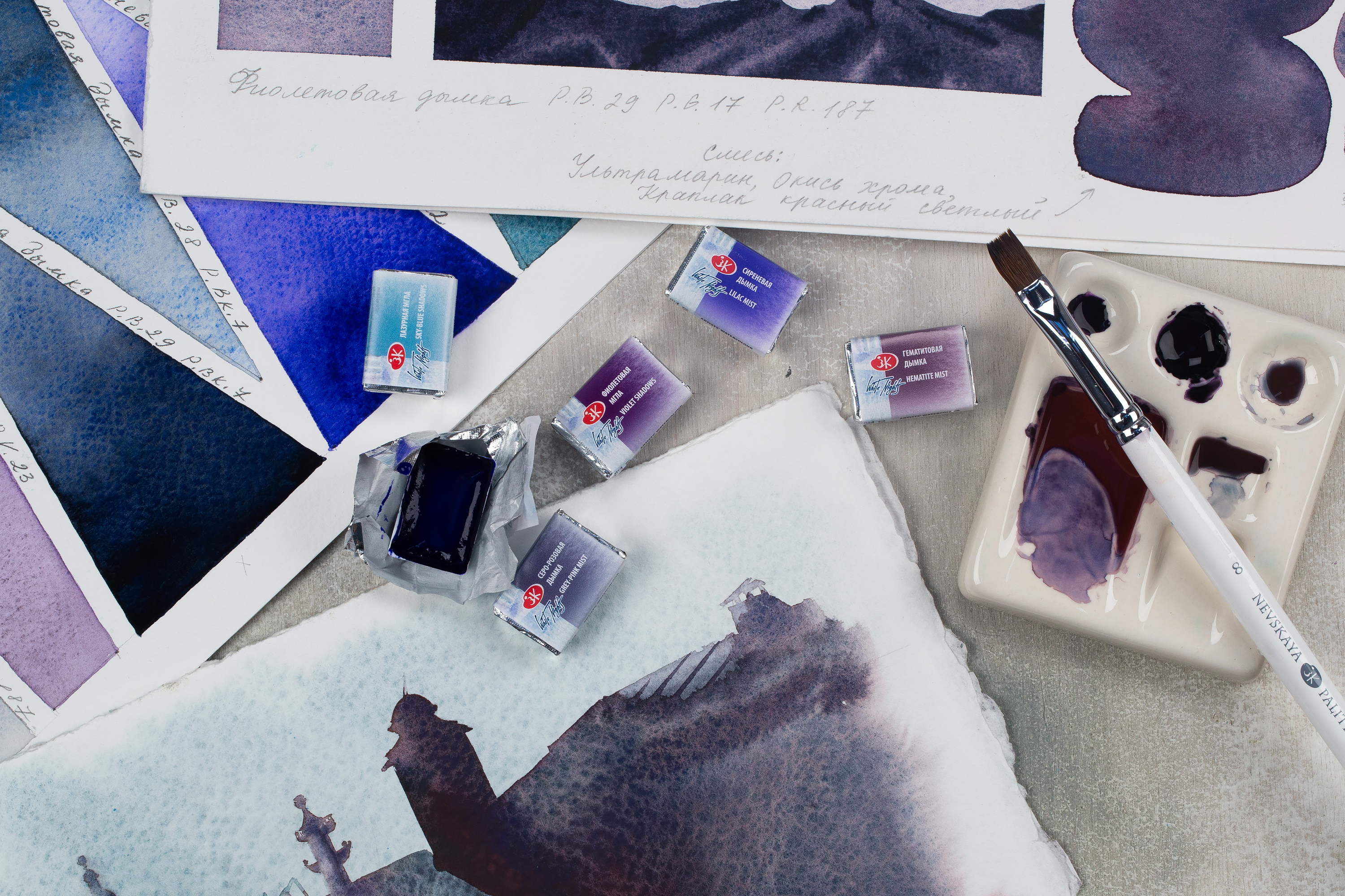 Пятнадцать новых цветов: аквамариновая дымка, гематитовая дымка, голубая дымка, голубая мгла, зеленая мгла, кобальтовая дымка, лазурная мгла, серо-розовая дымка, серо-синяя дымка, синяя мгла, сиреневая дымка, таежная дымка, фиолетовая дымка, фиолетовая мгла, хром-кобальтовая дымка. Краски на основе чёрного пигмента PBk11 объединены названием «мгла». Краски «дымка» это композиции разных пигментов с сильной грануляцией. Наименования «мгла» и «дымка» позволяют по названию отделить краски с сильной грануляцией от других оттенков в палитре.