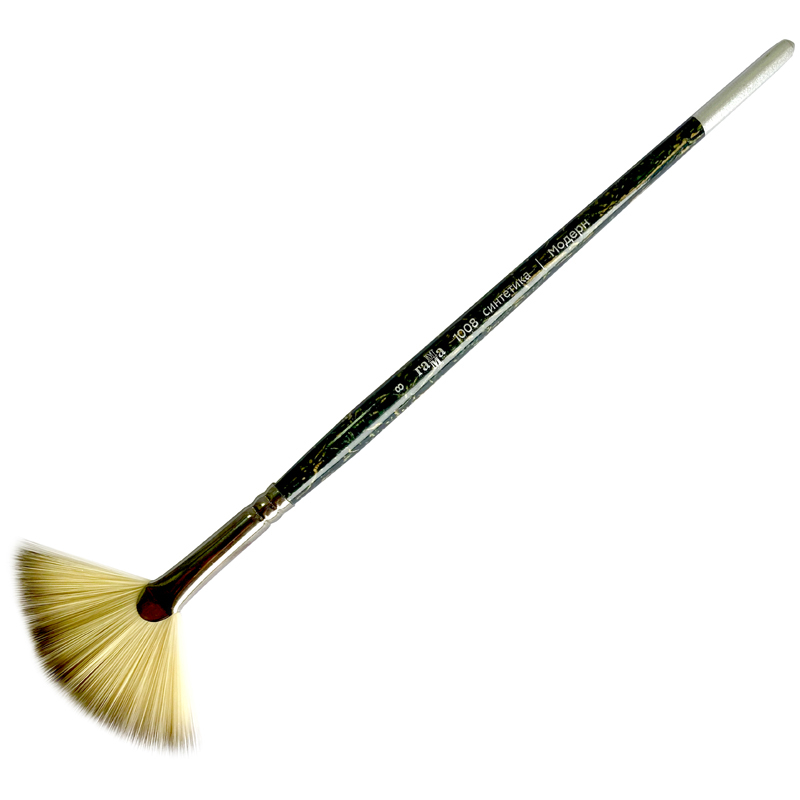 Веерные кисти - разновидность плоской кисти, имеет негустой пучок ворса в виде веера, позволяет выполнить цветовую растяжку, смягчить контуры рисунка, растушевать уже нанесенную на основу краску.