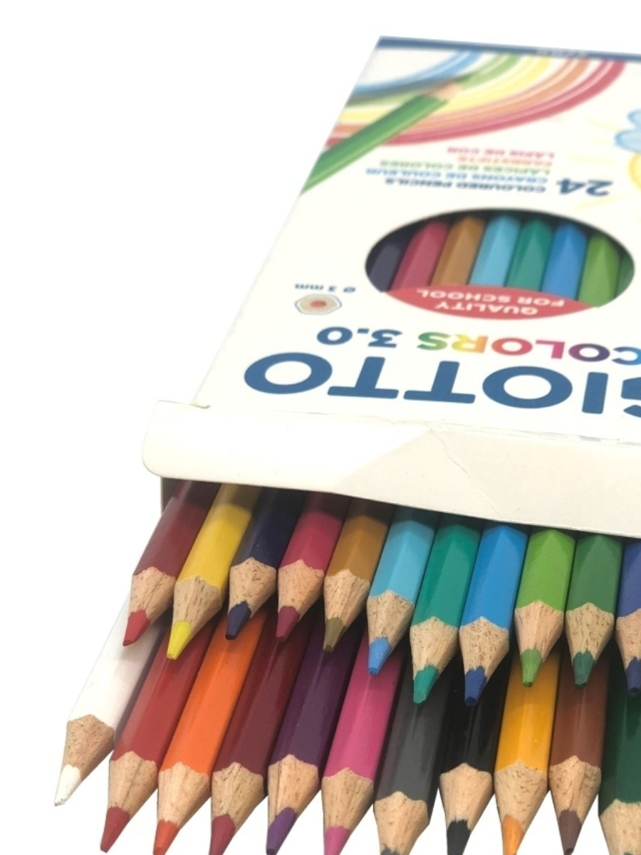Цветные деревянные карандашии, 24 шт. Гексагональной формы. Изготовлены из сертифицированной древесины. Легко и экономично затачиваются, не крошатся. Толщина грифеля - 3 мм. Яркие насыщенные цвета, мягкое рисование. На корпусе карандаша имеется место для персонализации. Идеально подходят для школы.
