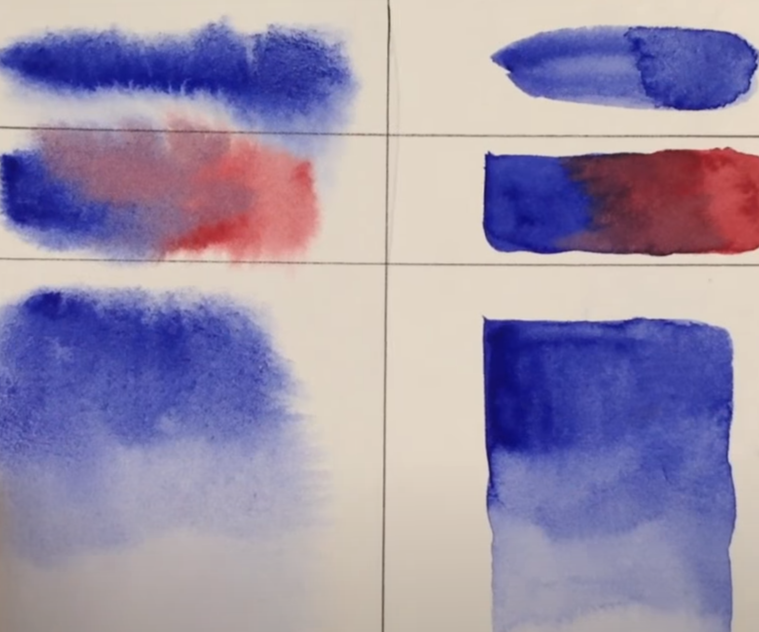 При смешении градиент получается со всеми правильными свойствами - мягкий, затухающий, равномерный. Цвета в разбавленном виде заметно тушатся.
