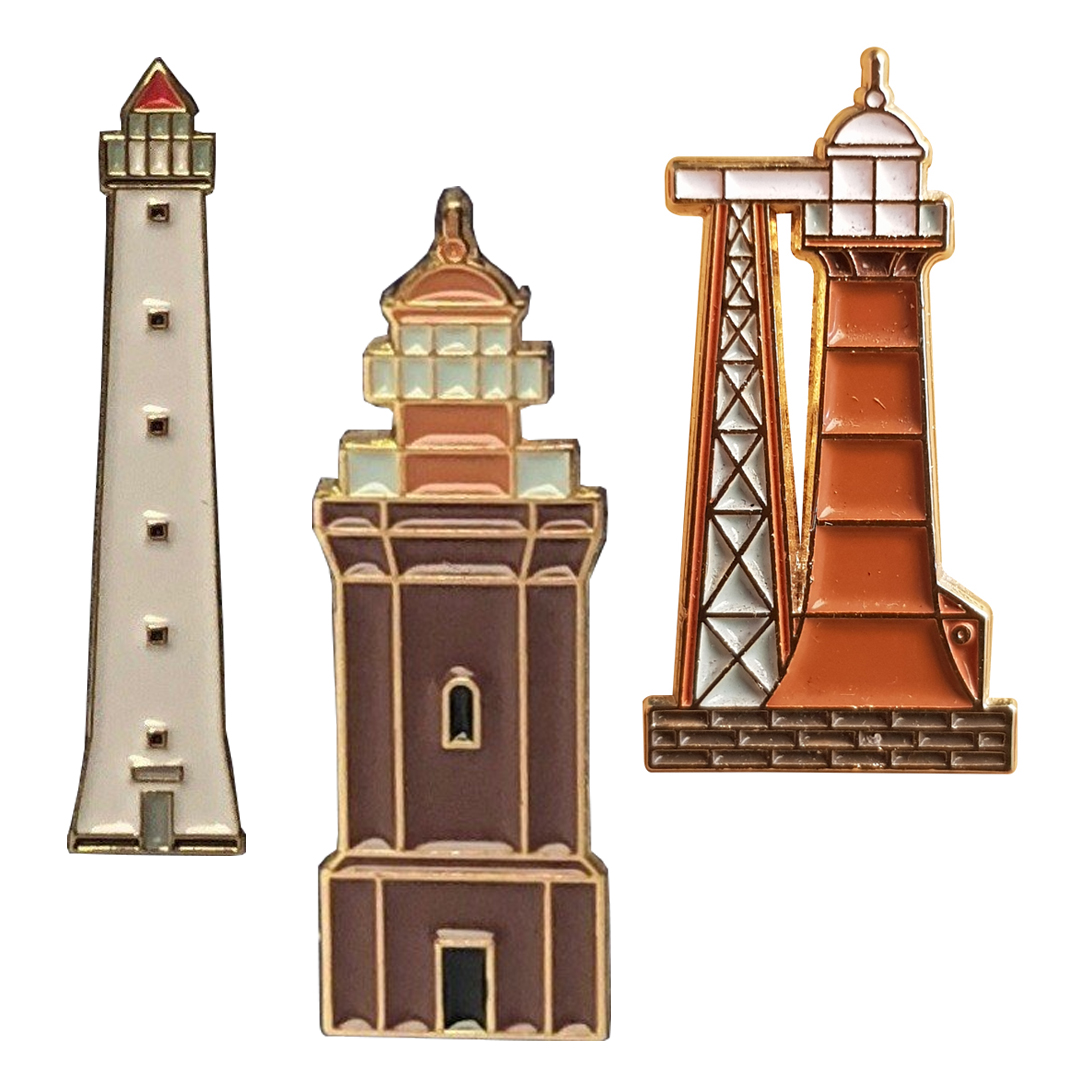 Тематический набор значков: Маяк Задний створный знак, Маяк Нижний Николаевский, Маяк Родшер. Значки произведены из качественного металла с четкой заливкой цвета и формами. После того, как вы прицепите один значок на свою куртку или рюкзак, то он начнет стремительно обрастать новыми и новыми значками. Это стильный и элегантный атрибут для любой вещи. Каждому творческому человеку понравится такой подарок.