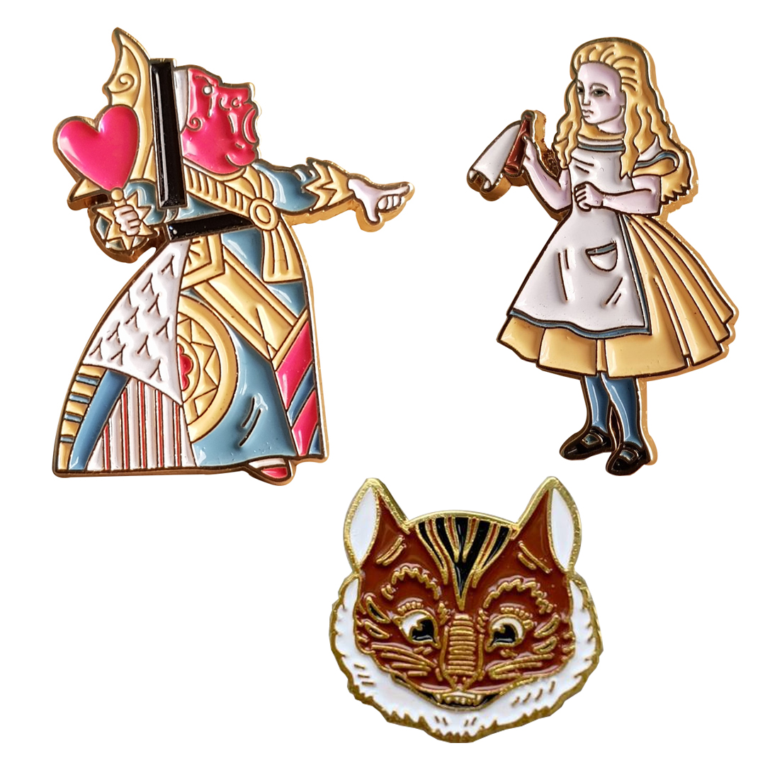 Тематический набор значков "Алиса": "Выпей меня", "Кот", "Красная королева". Значки произведены из качественного металла с четкой заливкой цвета и формами. После того, как вы прицепите один значок на свою куртку или рюкзак, то он начнет стремительно обрастать новыми и новыми значками. Это стильный и элегантный атрибут для любой вещи. Каждому творческому человеку понравится такой подарок.