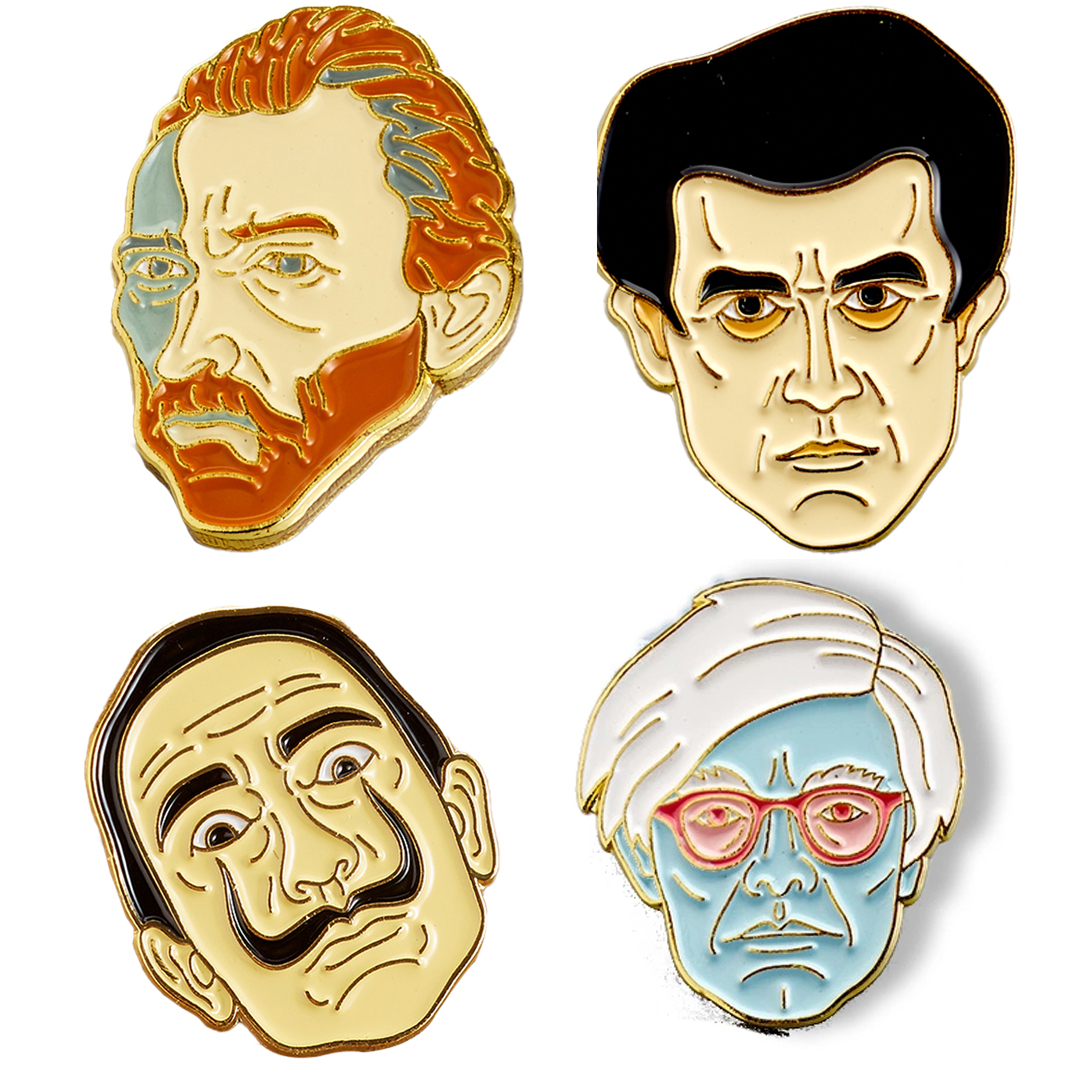 Тематический набор значков: Ван Гог, Казимир Малевич, Сальвадор Дали, Энди Уорхол. Значки произведены из качественного металла с четкой заливкой цвета и формами. После того, как вы прицепите один значок на свою куртку или рюкзак, то он начнет стремительно обрастать новыми и новыми значками. Это стильный и элегантный атрибут для любой вещи. Каждому творческому человеку понравится такой подарок.