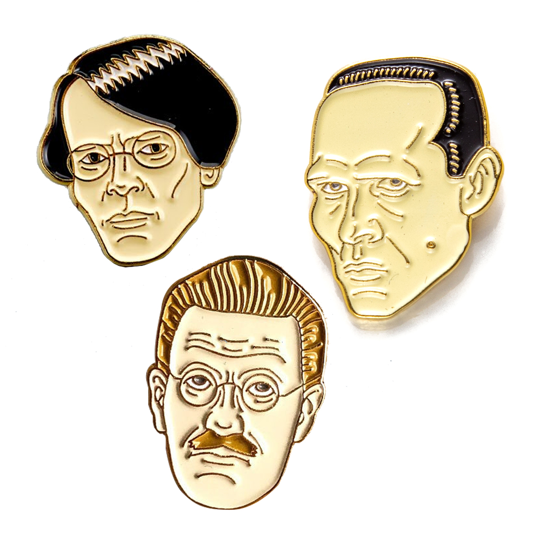 Тематический набор значков: Владислав Ходасевич, Даниил Хармс, Джеймс Джойс. Значки произведены из качественного металла с четкой заливкой цвета и формами. После того, как вы прицепите один значок на свою куртку или рюкзак, то он начнет стремительно обрастать новыми и новыми значками. Это стильный и элегантный атрибут для любой вещи. Каждому творческому человеку понравится такой подарок.