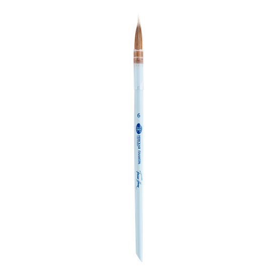 Кисть "Белые ночи" круглая, на короткой ручке создана специально для акварельной техники. Ворс кисти выполнен из японской синтетики нового поколения и натурального ворса колонка. Кисть с таким составом обладает рядом преимуществ - ворс упругий и мягкий одновременно, превосходно держит острый кончик, долго удерживает воду и краску, более долговечен в использовании. Кисть легкая, приятно лежит в руке. Ворс надежно закреплен в пленочную обойму, перевязан и проклеен. Ручка кисти имеет скошенный кончик - может применяться для создания дополнительных эффектов в работе, а также для разделения листов в альбомах-склейках.Кисти выпущены лимитированной серией в размерах №4, 6, 8, 10.