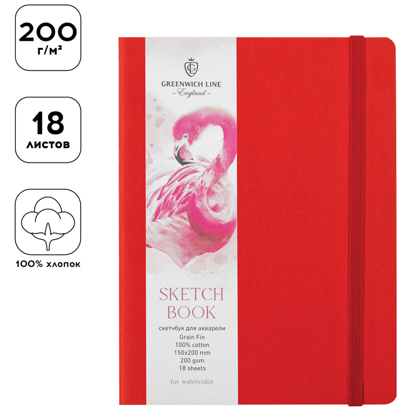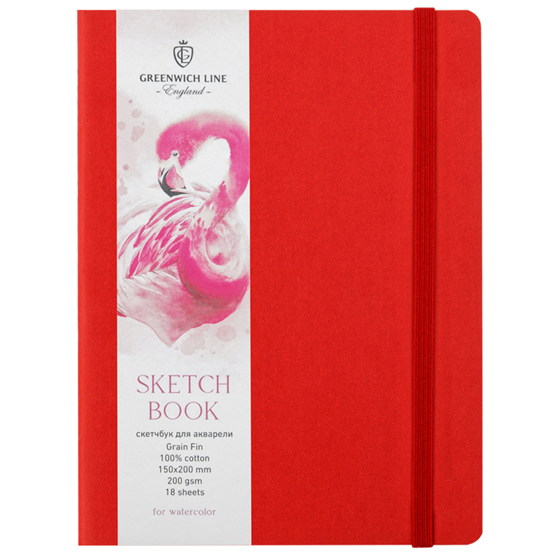 Скетчбук для акварели 18л., 150*200 Greenwich Line, красный, 100% хлопок, 200г/м2, на резинке