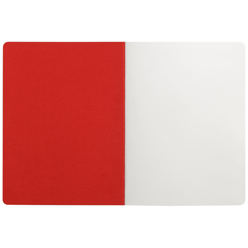 Мягкая обложка из дизайнерского картона красного цвета фиксируется резинкой в тон.