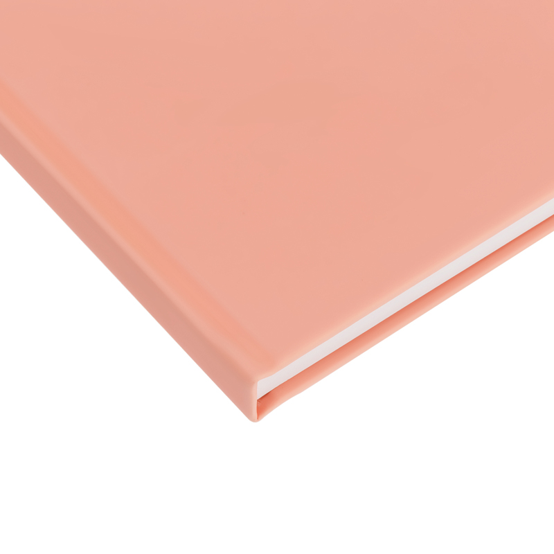 Обложка выполнена из экокожи кораллового цвета, в закрытом виде фиксируется резинкой того же цвета.