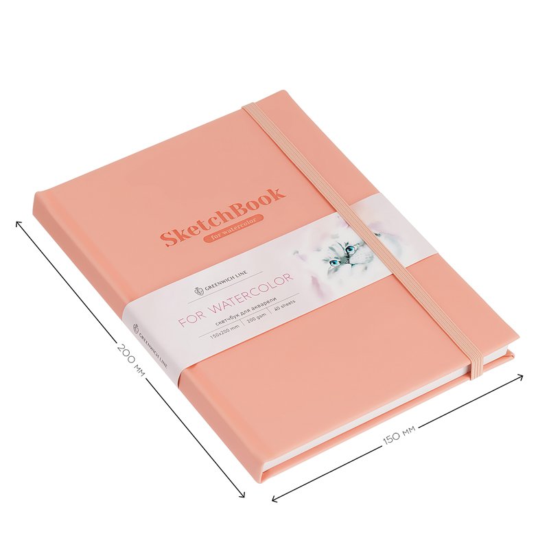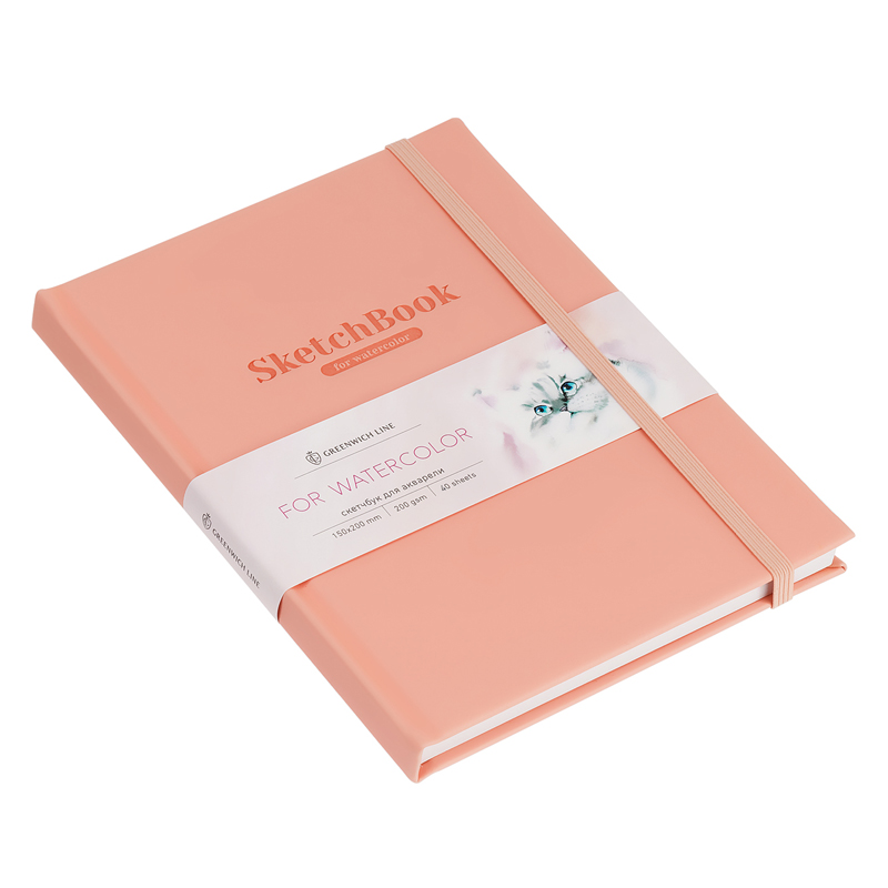 Скетчбук для акварели 40л., 150*200 Greenwich Line, коралловый, 200г/м2, кожзам, на резинке