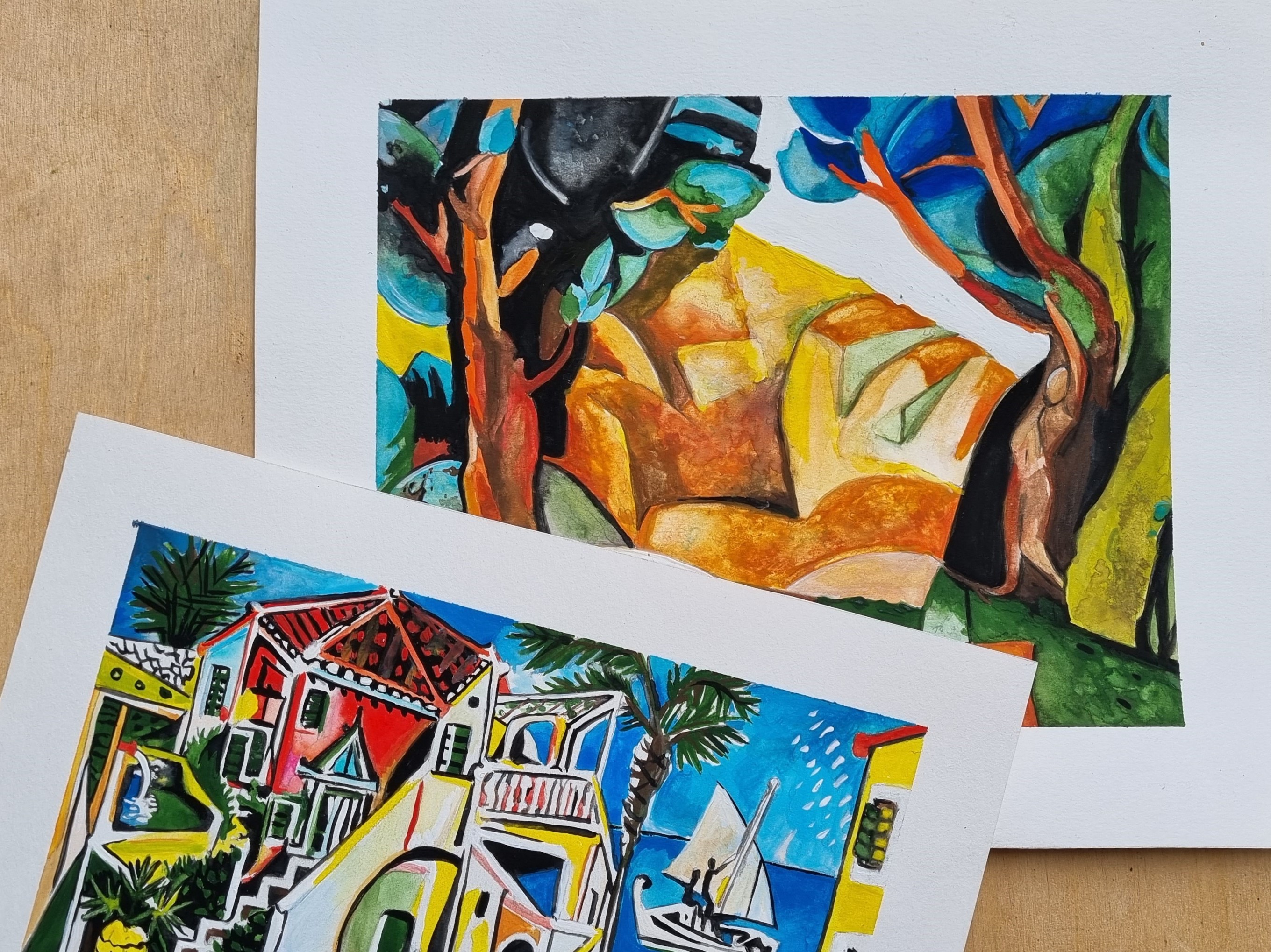 Прекрасно сочетается с гуашью «Старый мастер» от Гамма (см. изо). На ней удавалось выполнять лёгкие размытия, плотные, точечные нанесения.