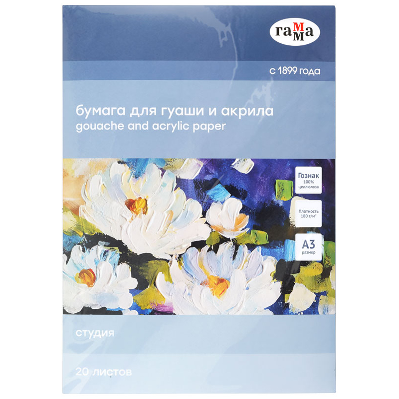 Папка бумаги Гамма "Студия" предназначена для работ гуашевыми красками, акриловыми, а также темперой.