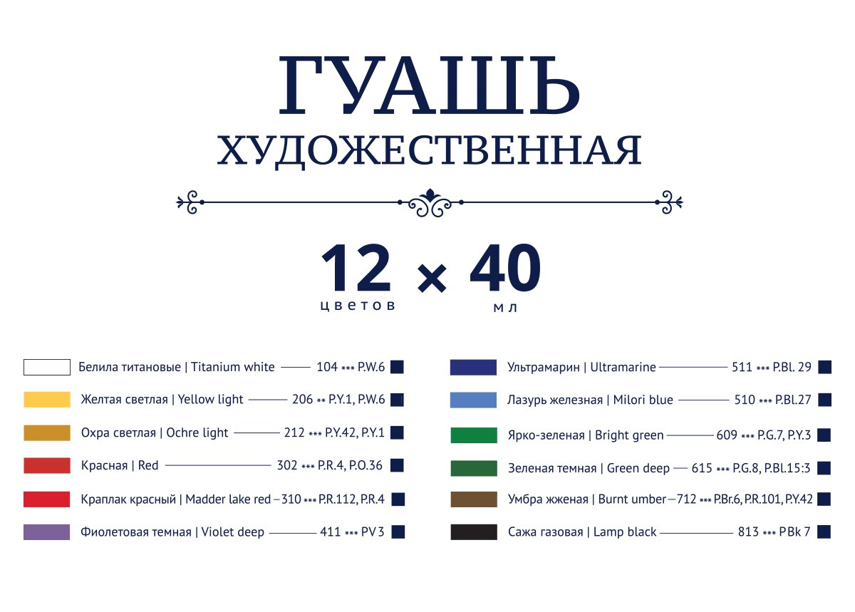 Краска гуашь "VISTA-ARTISTA" "Gallery" набор художественный VAGS-1240 12 цв. 40 мл .