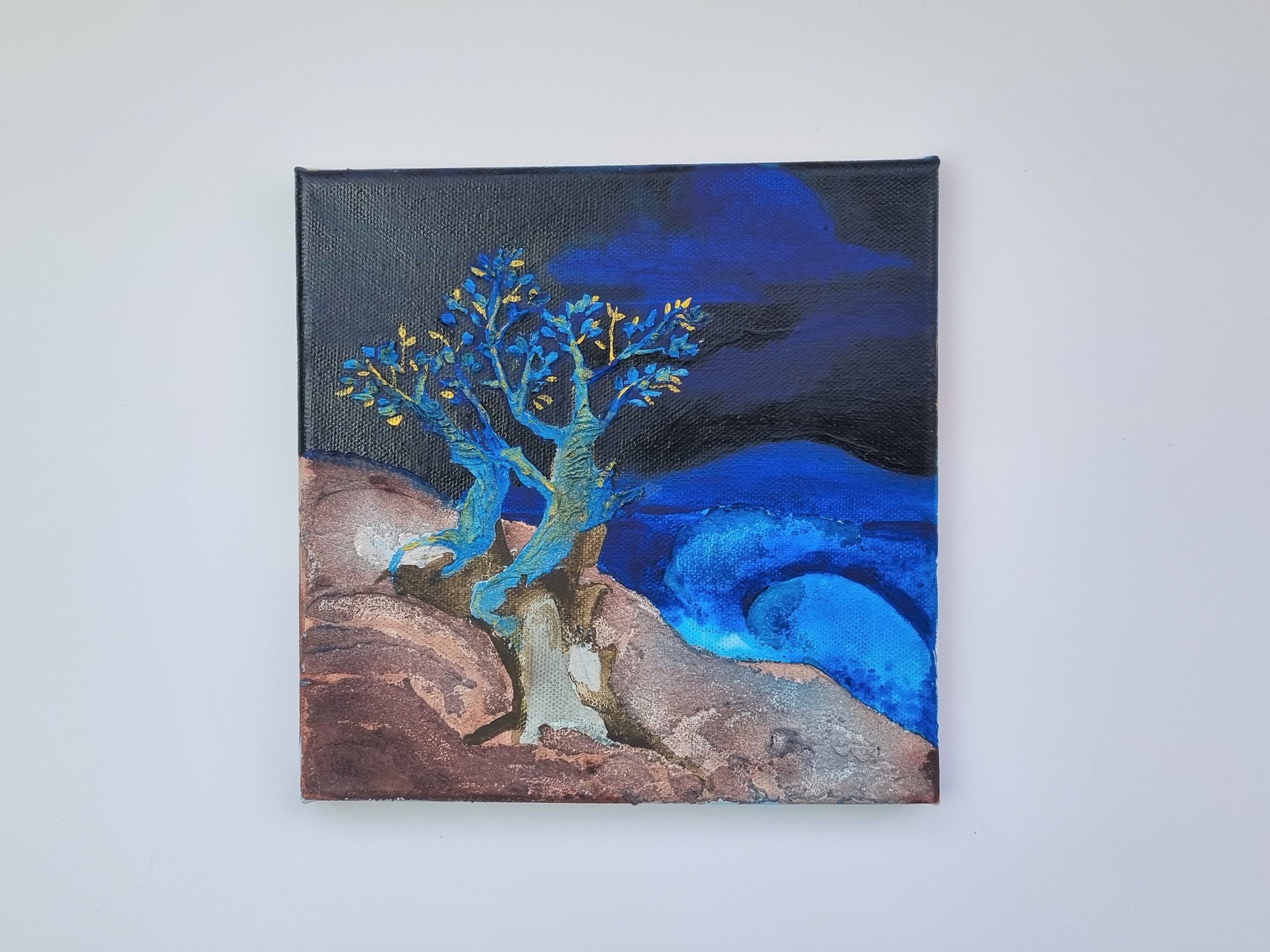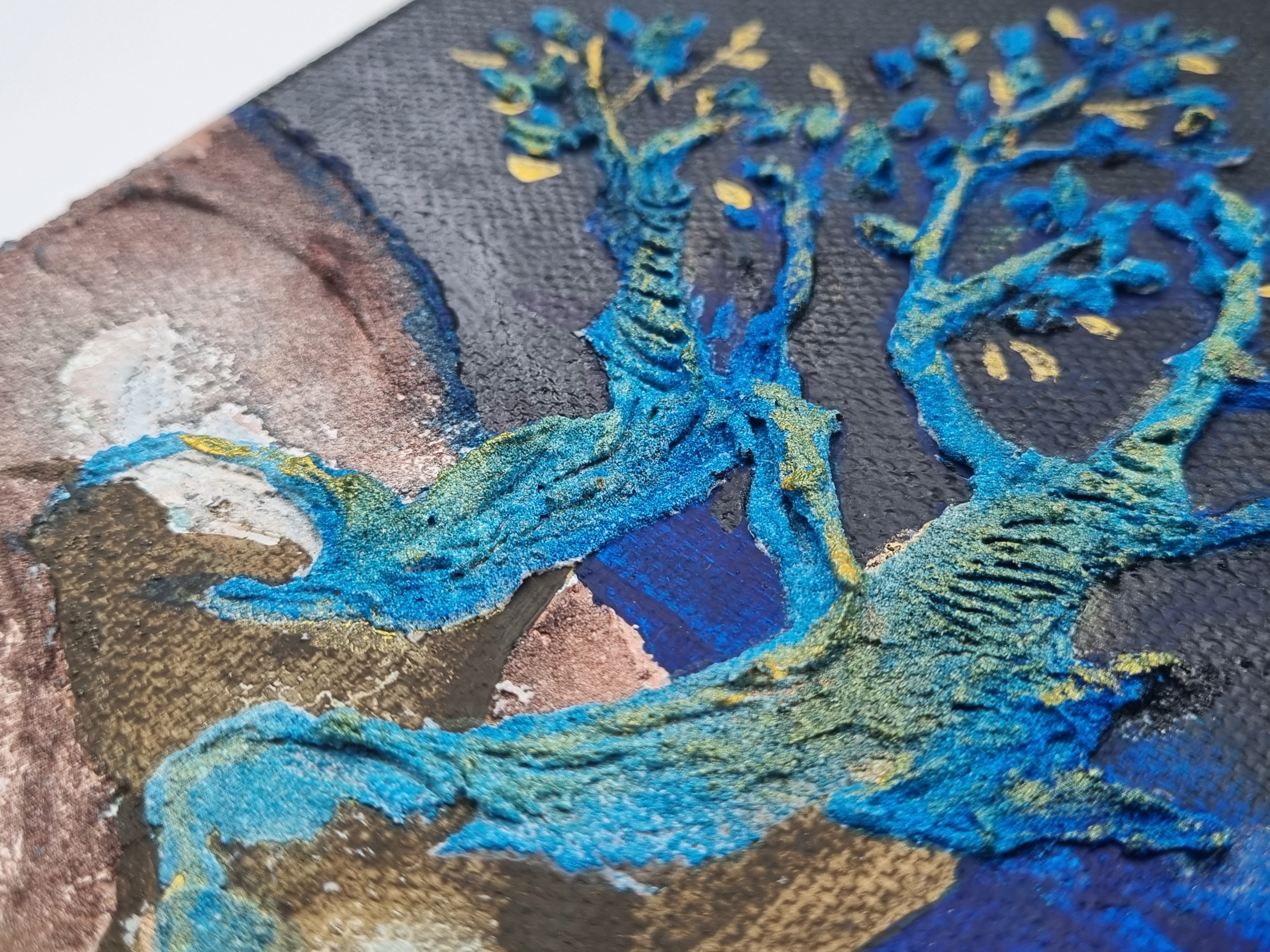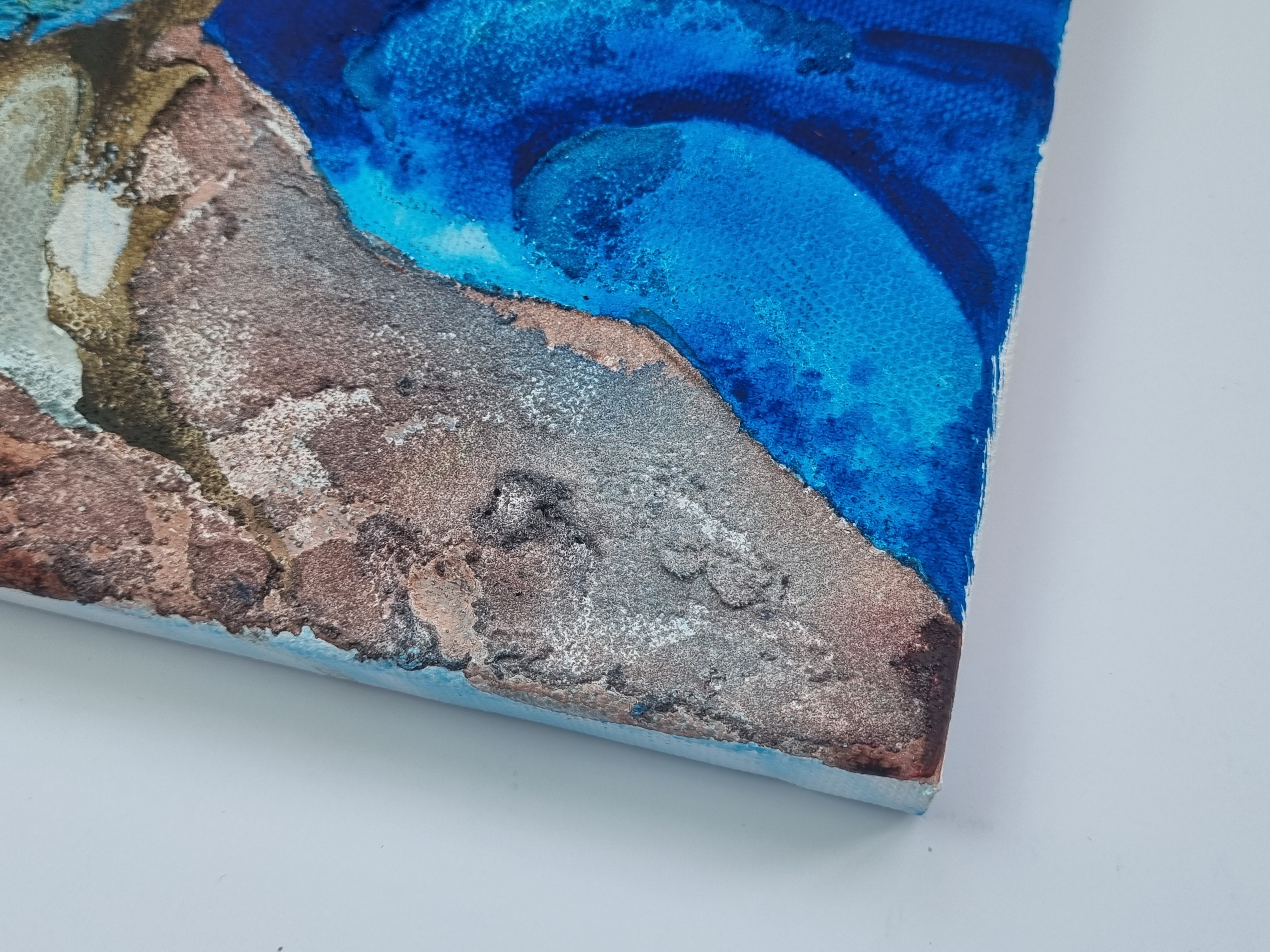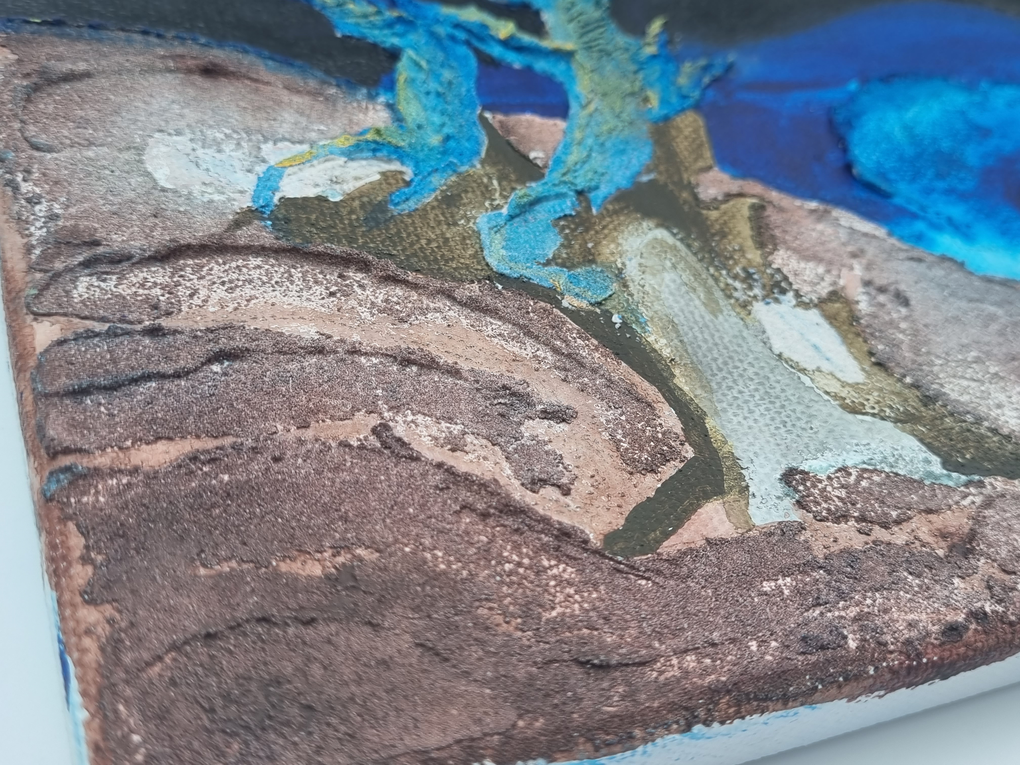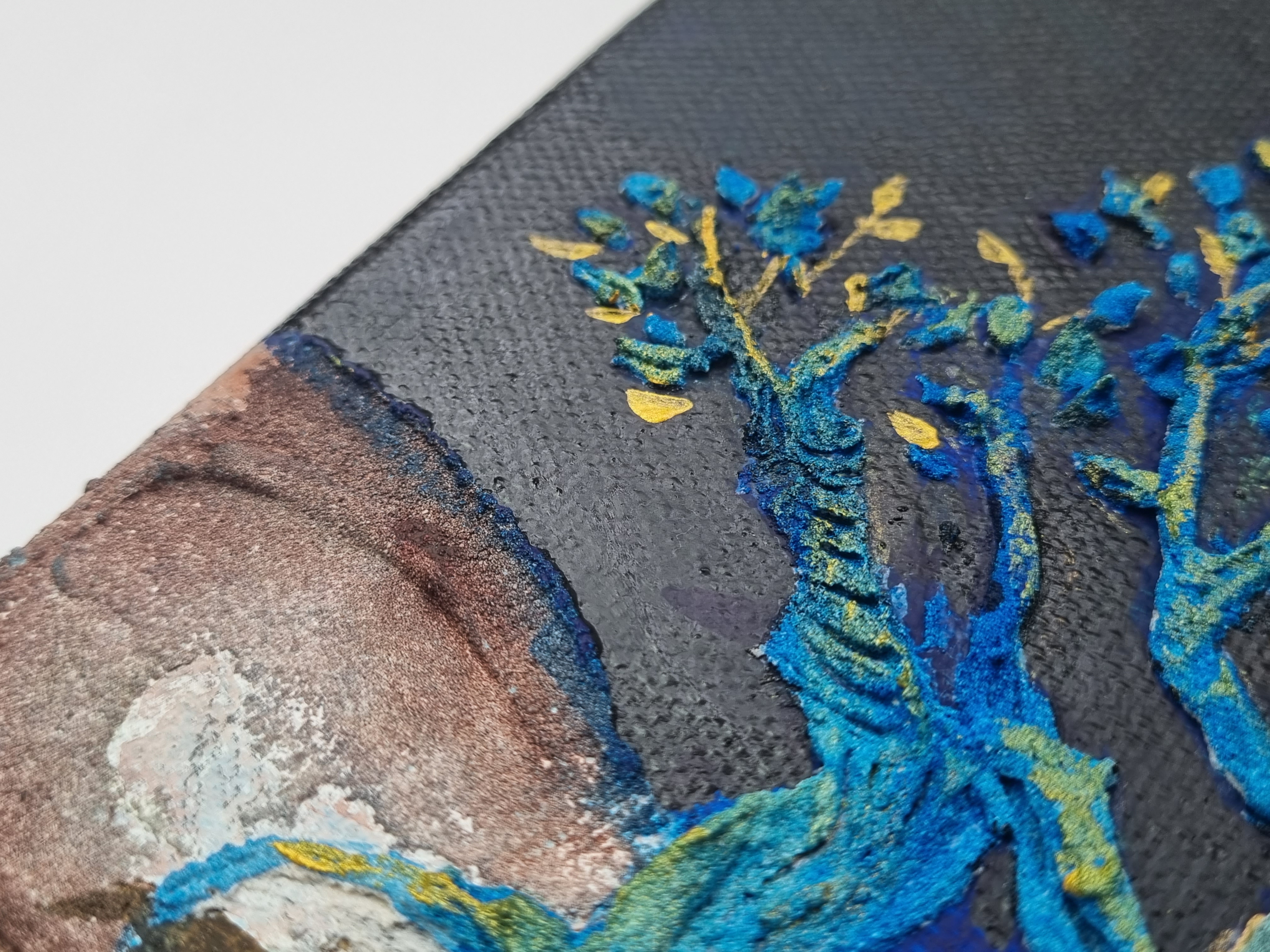 При последующем окрашивании пористой поверхности, она, жадно вбирает в себя акрил. Краска моментально подчёркивает каждую микровпадинку и сохраняет песочную фактуру, сразу же стабилизируется. Некоторое время ещё можно разбавлять/добавлять краску, но чтобы сохранить фактуру, лучше не забивать её излишками краски. Она сразу берёт в себя столько, сколько ей нужно.