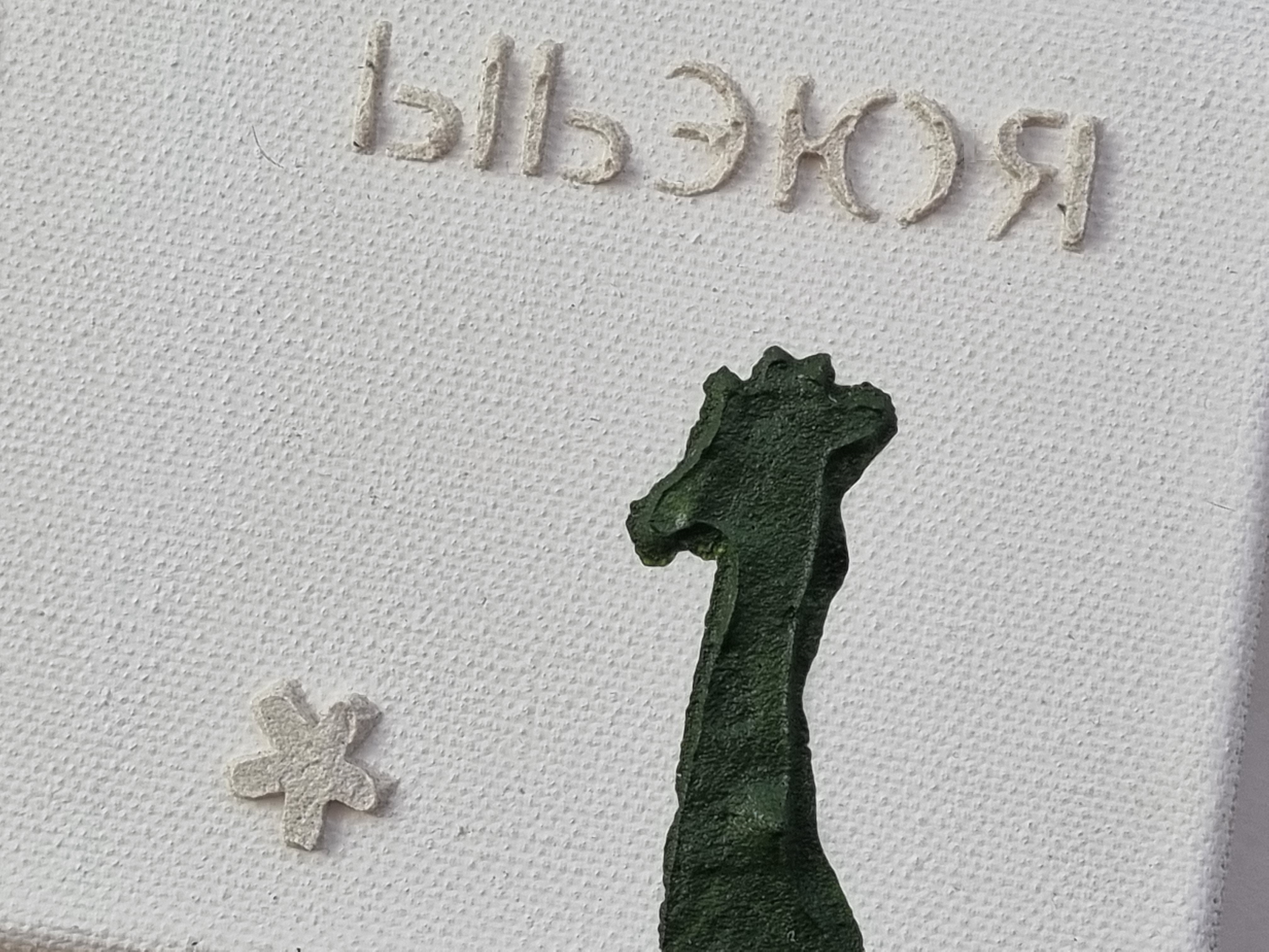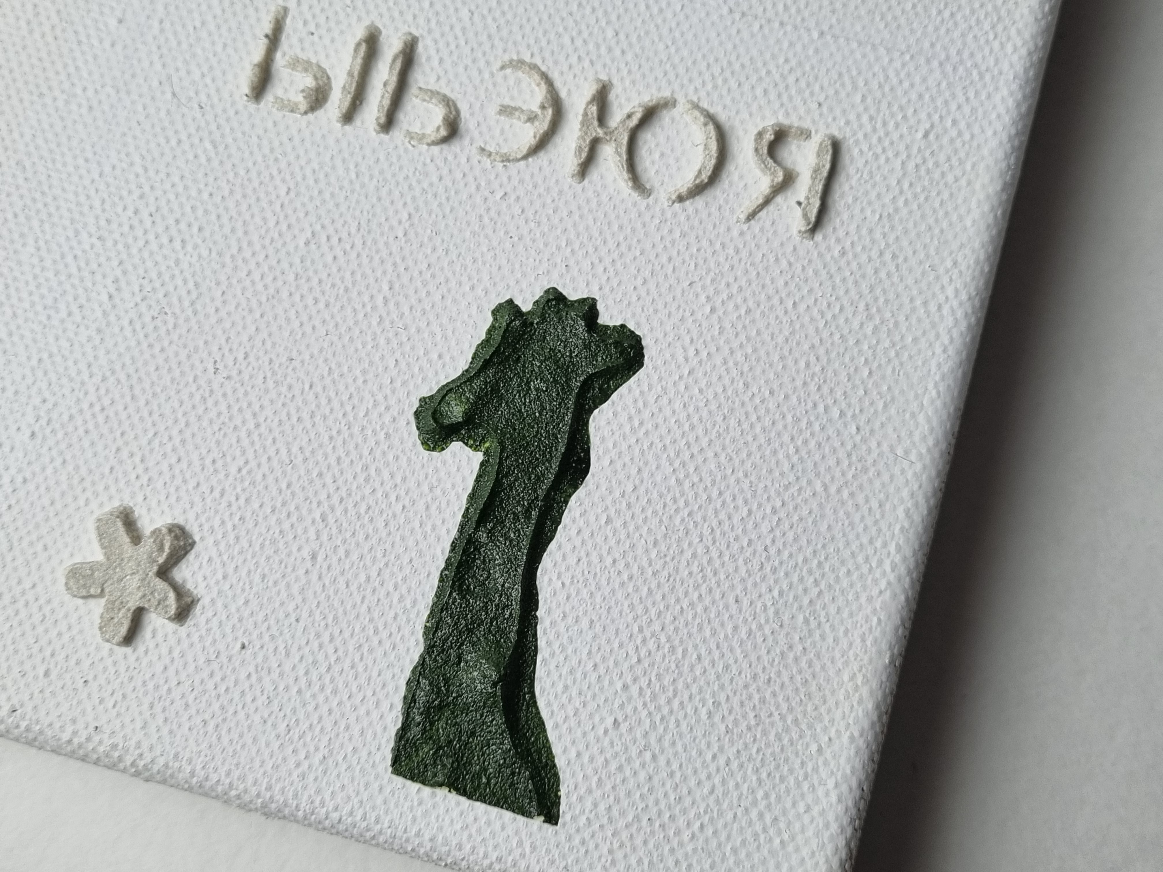 4 через трафарет наносится окрашенная паста и бесцветные тонкие элементы (буквы).