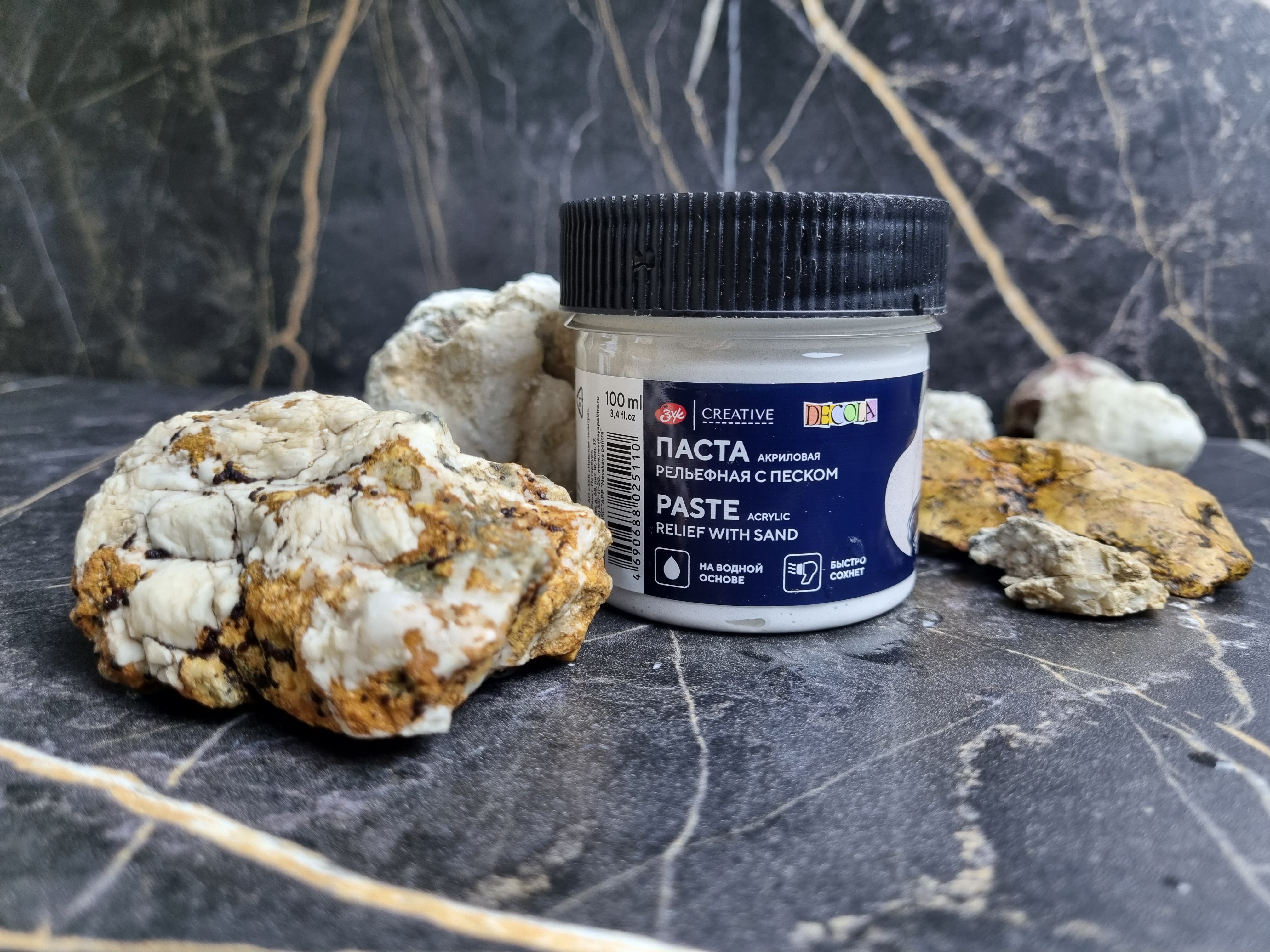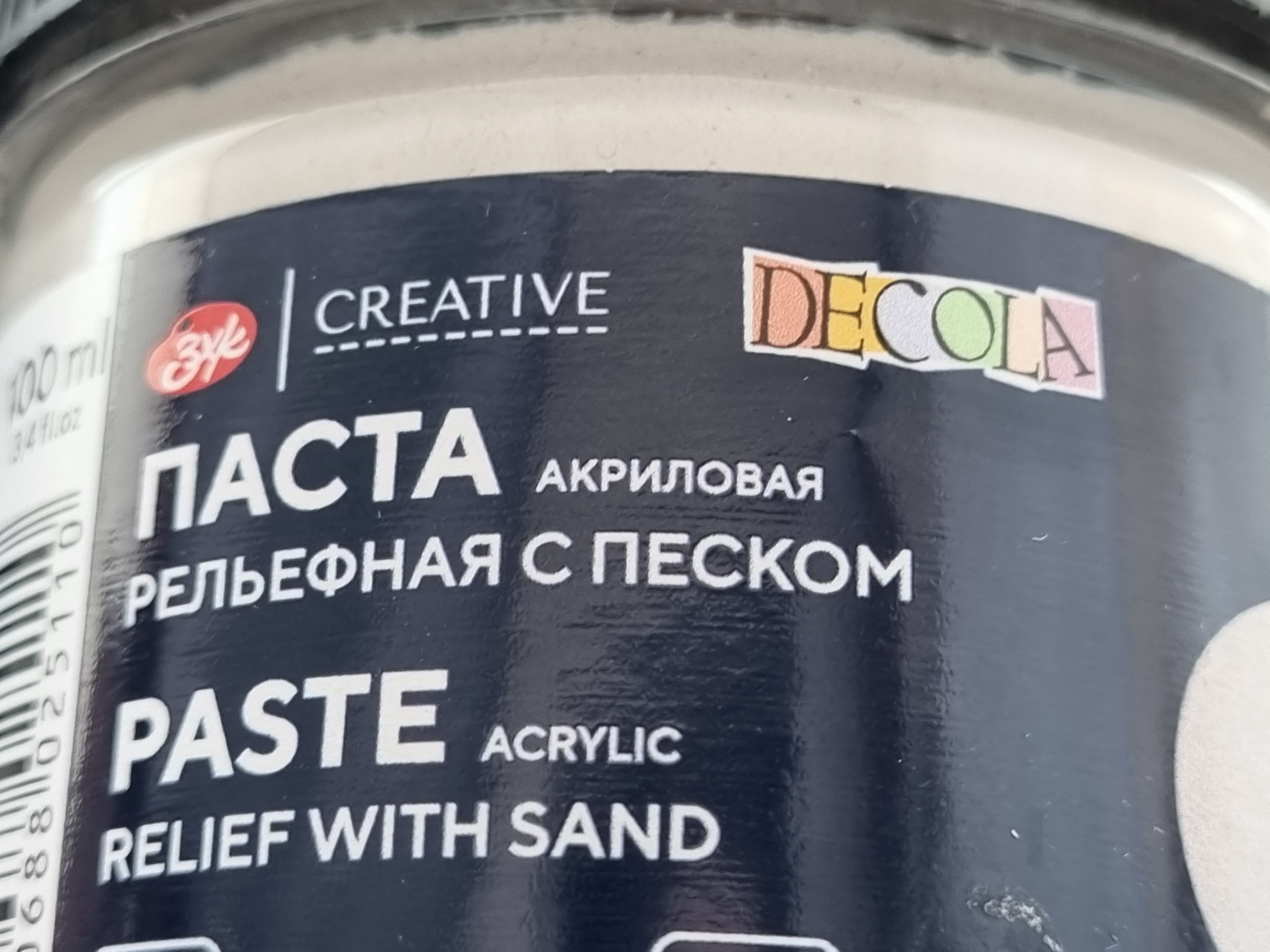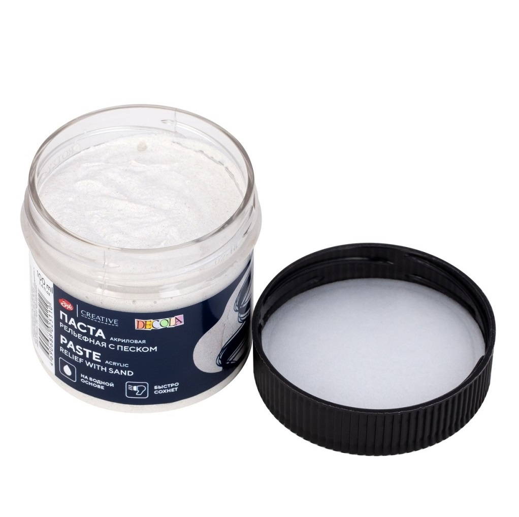 Паста Decola с песком для декоративно-прикладного творчества на основе водной акриловой дисперсии предназначена для формирования объемного (рельефного) покрытия на любой поверхности.