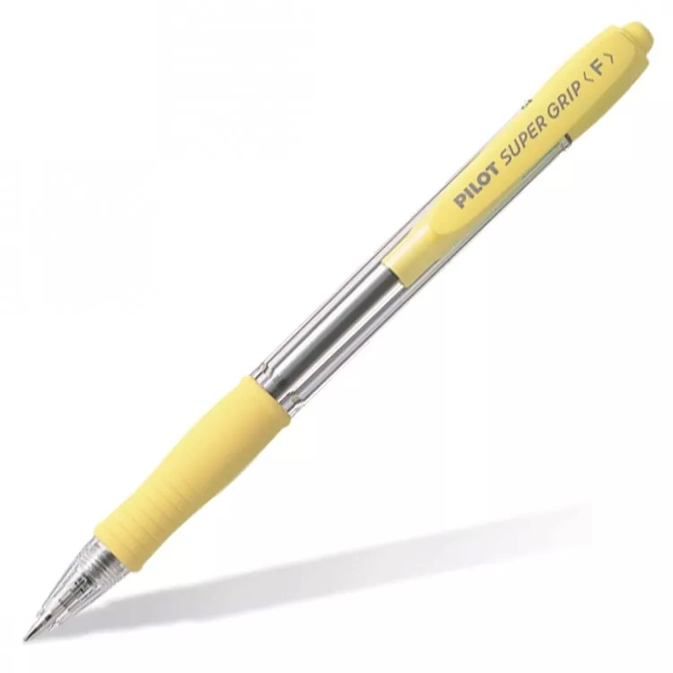 Автоматическая шариковая ручка с резиновым упором для пальцев, цвет чернил желтый, толщина линии F (тонкая), синяя