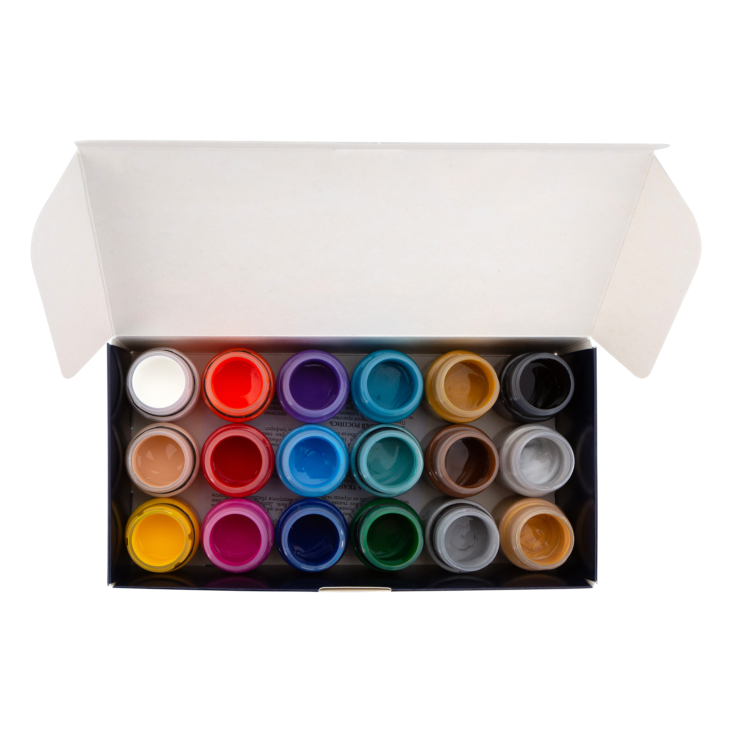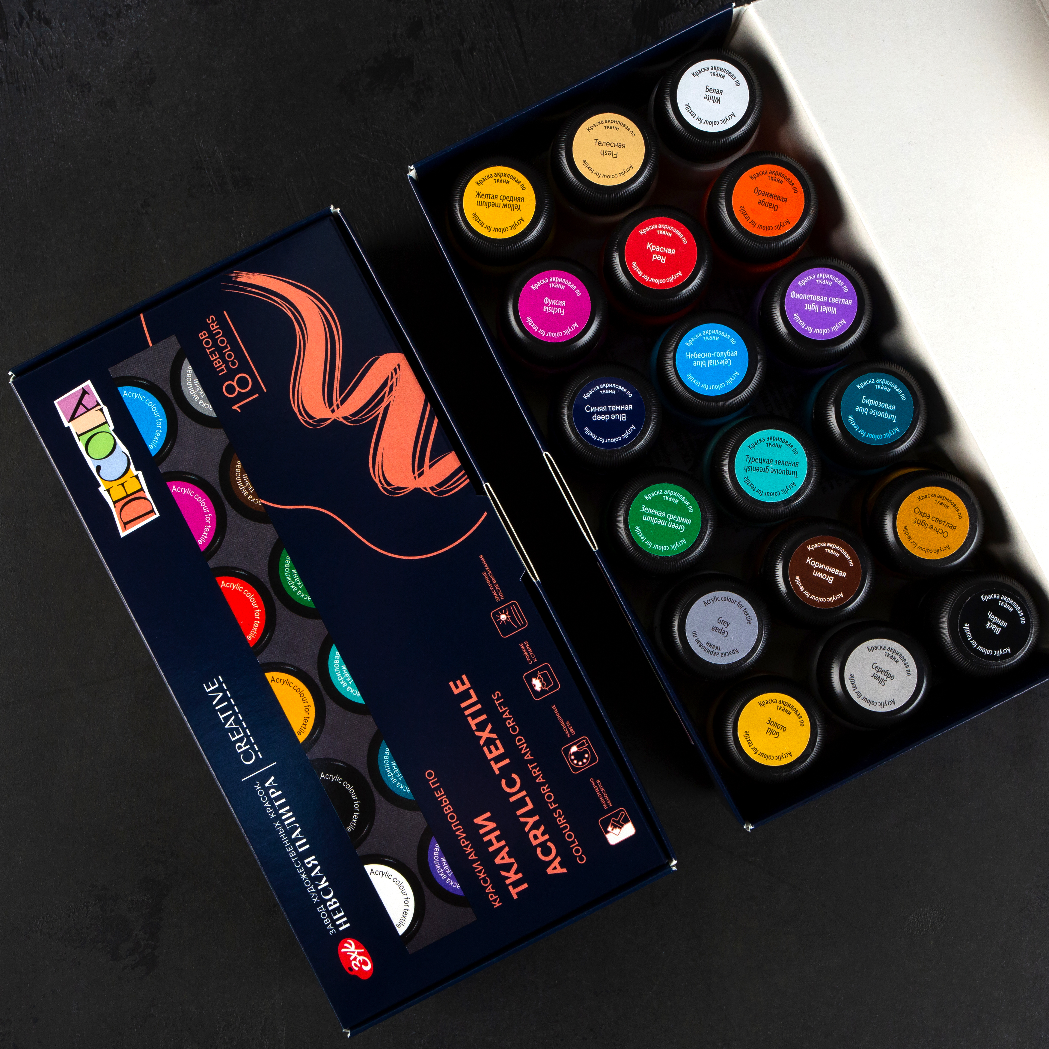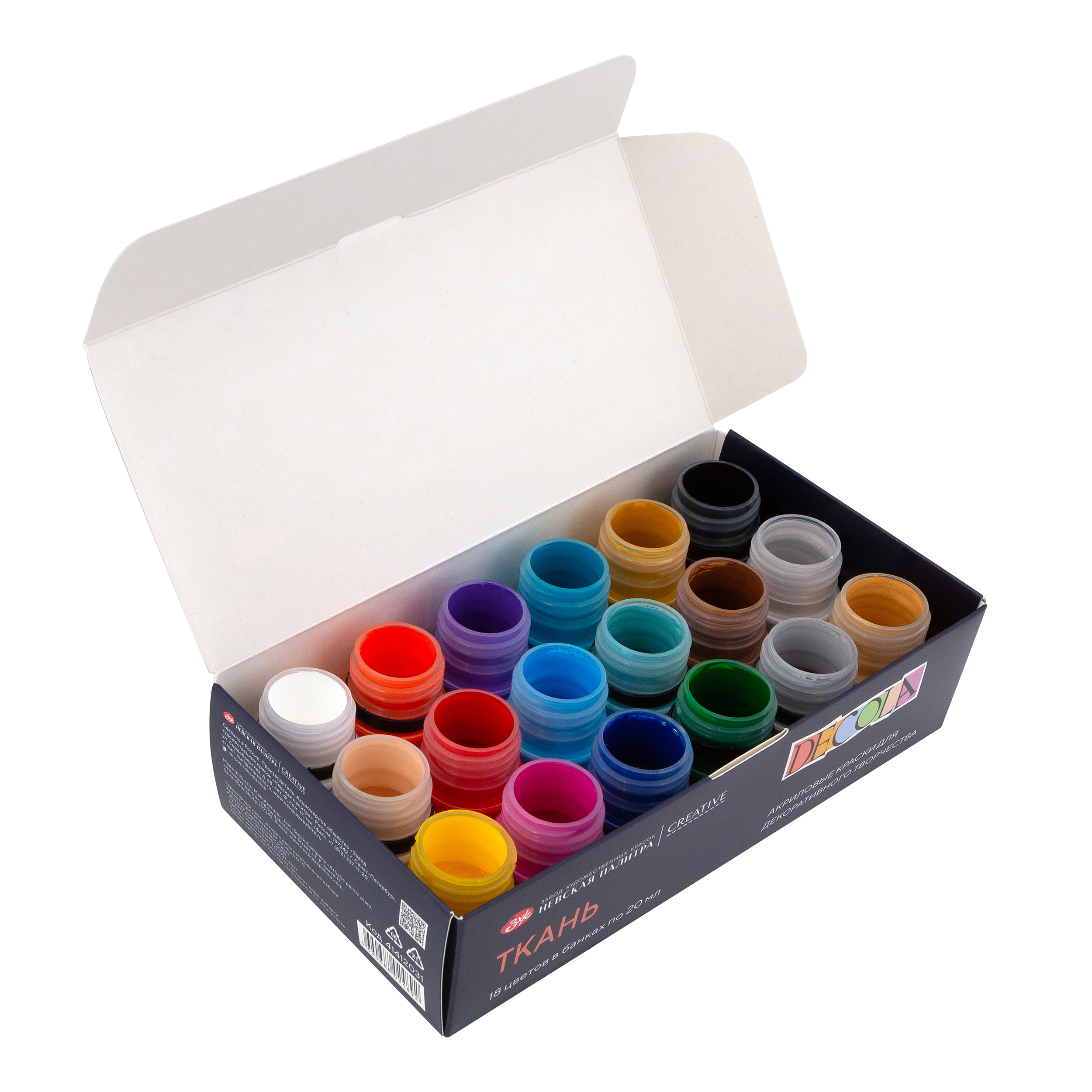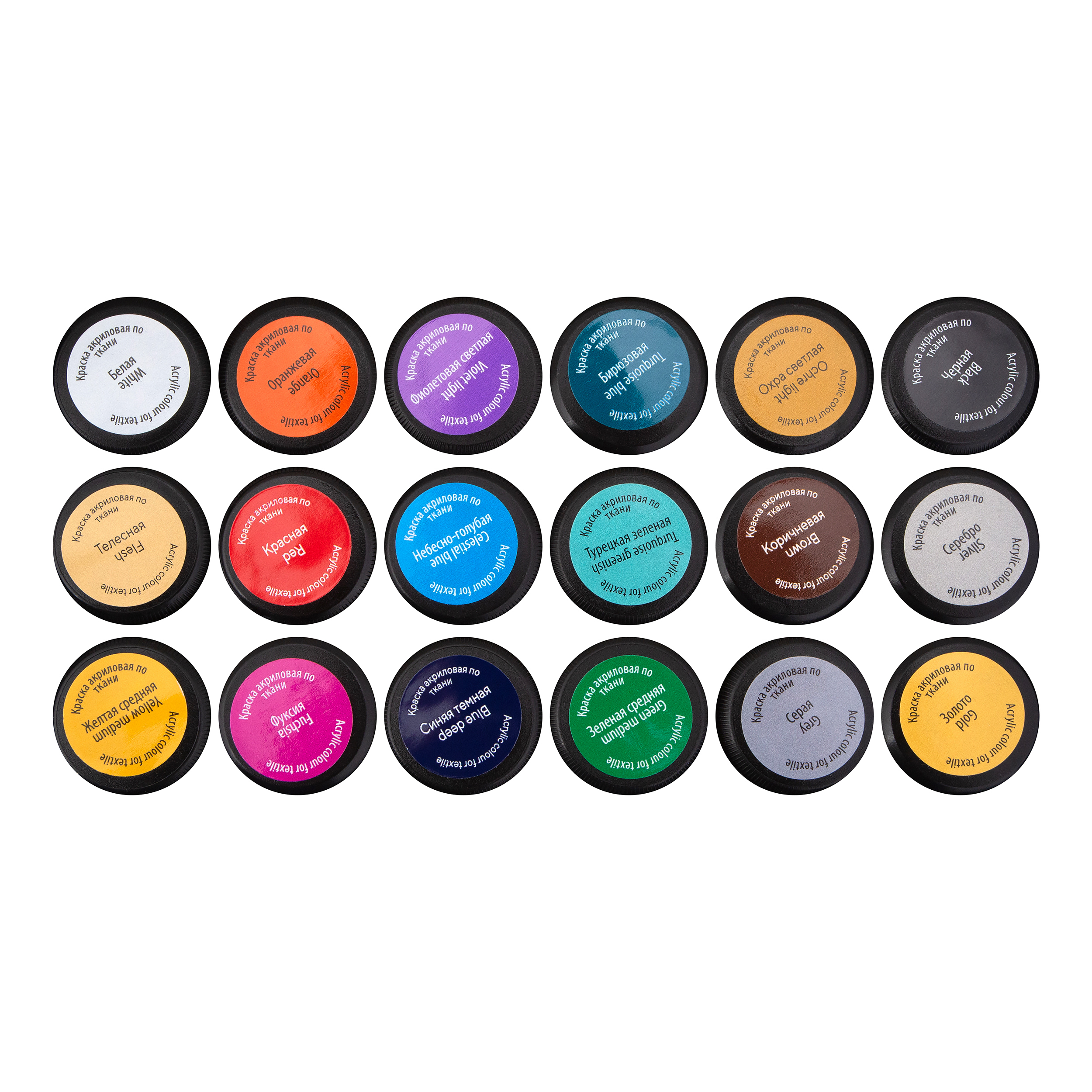 Набор акриловых красок по ткани 18 цветов в банках 20 мл.