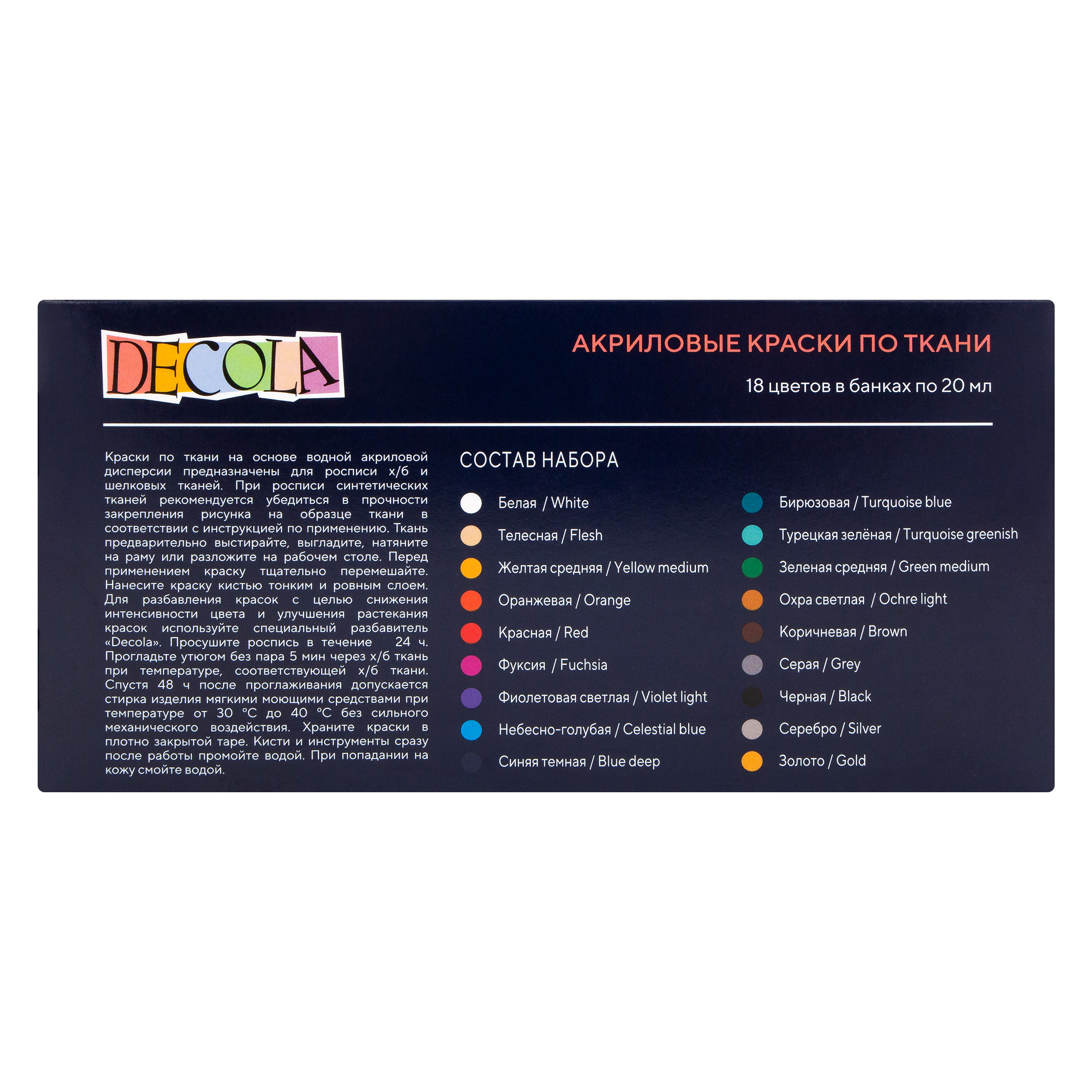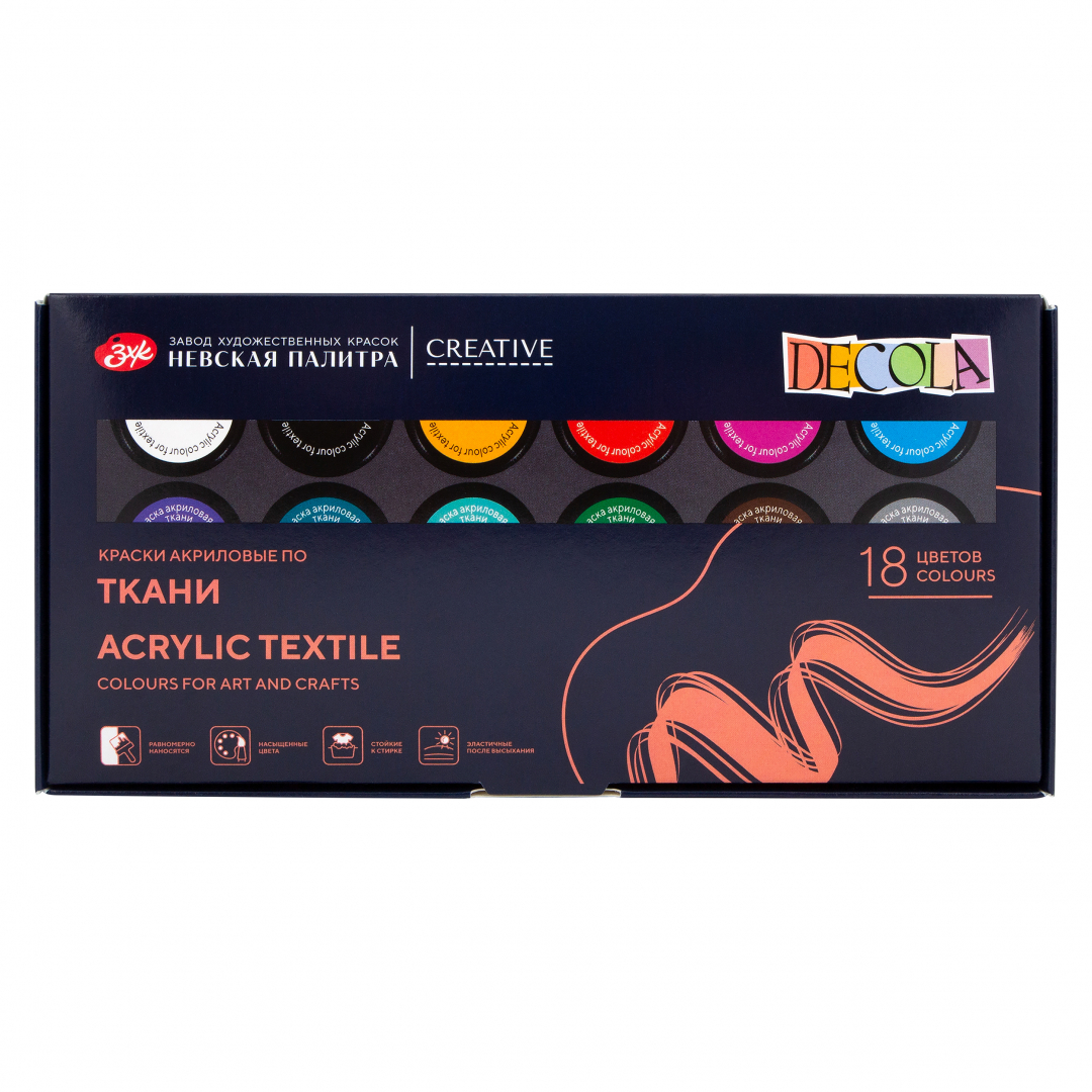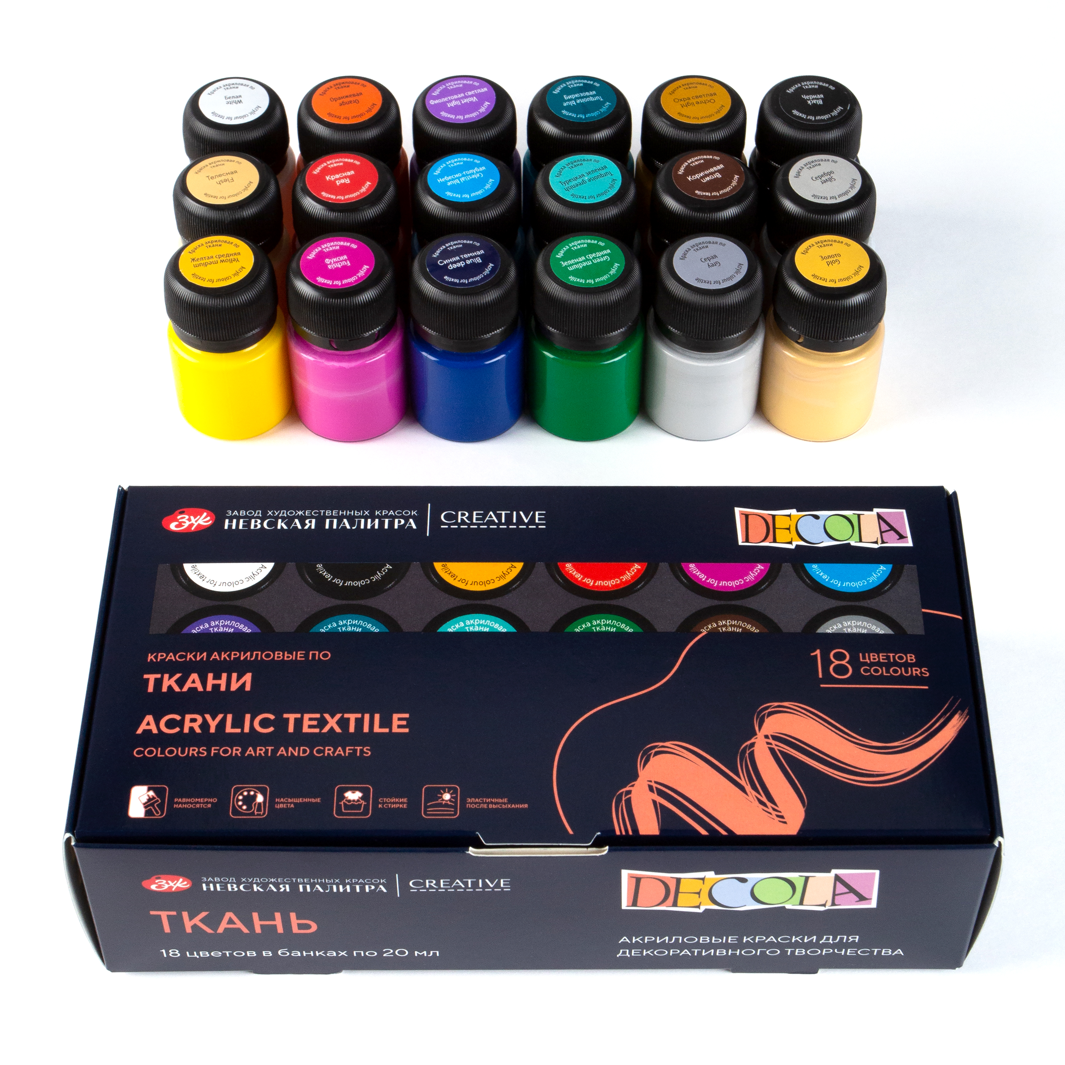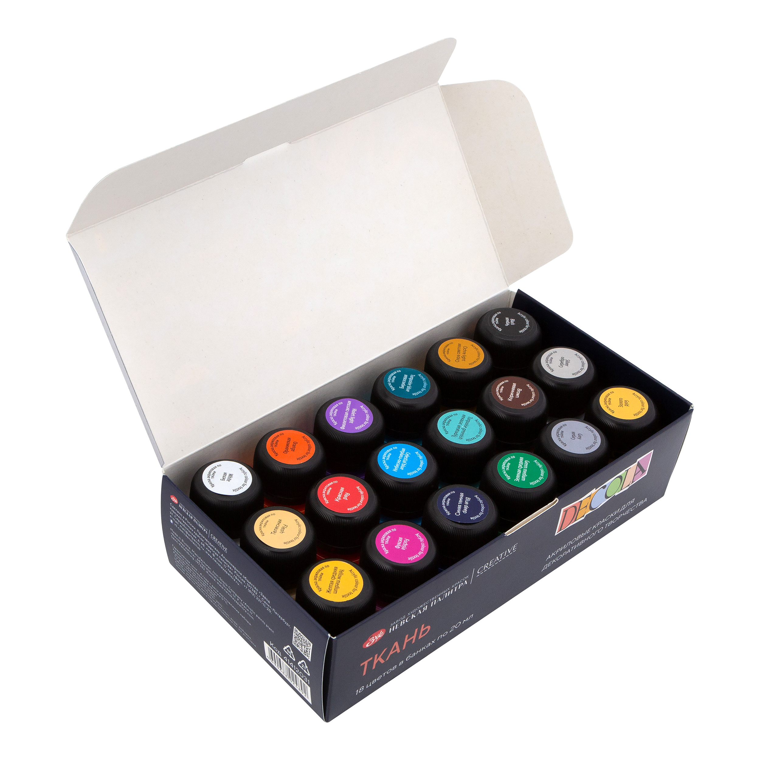 Набор акриловых красок по ткани 18 цветов в банках 20 мл.
