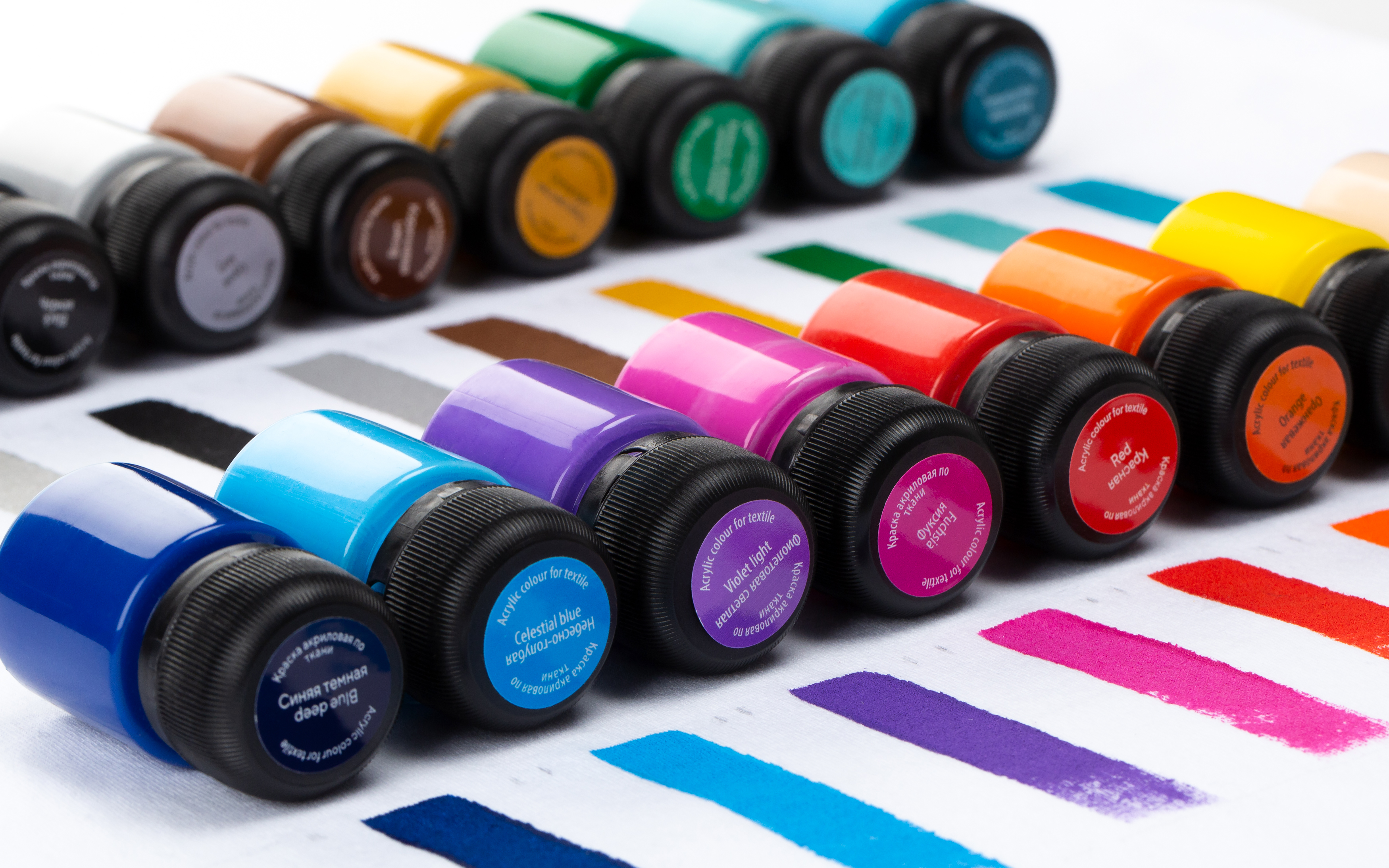 Акриловые краски по ткани изготавливаются на основе водной акриловой дисперсии и образуют после высыхания прочную эластичную пленку на поверхности. Краски предназначены для росписи хлопчатобумажных и шелковых тканей. При росписи синтетических тканей рекомендуется убедиться в прочности закрепления рисунка на образце ткани.
