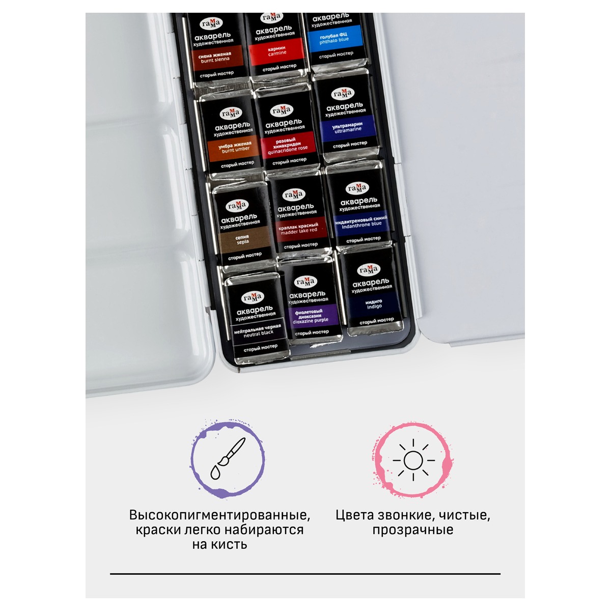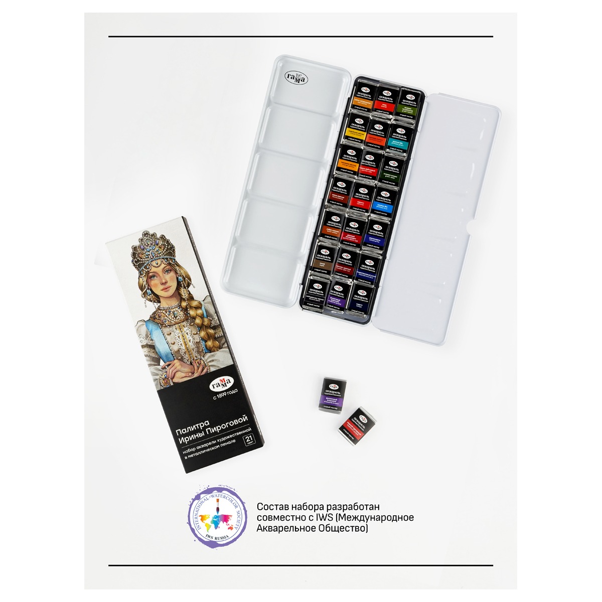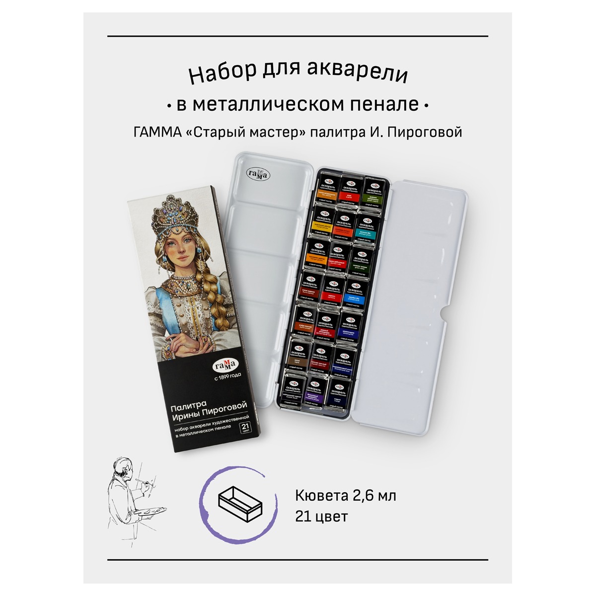Набор акварели "Старый Мастер" Палитра Ирины Пироговой, 21цв кюветы метал. коробка
