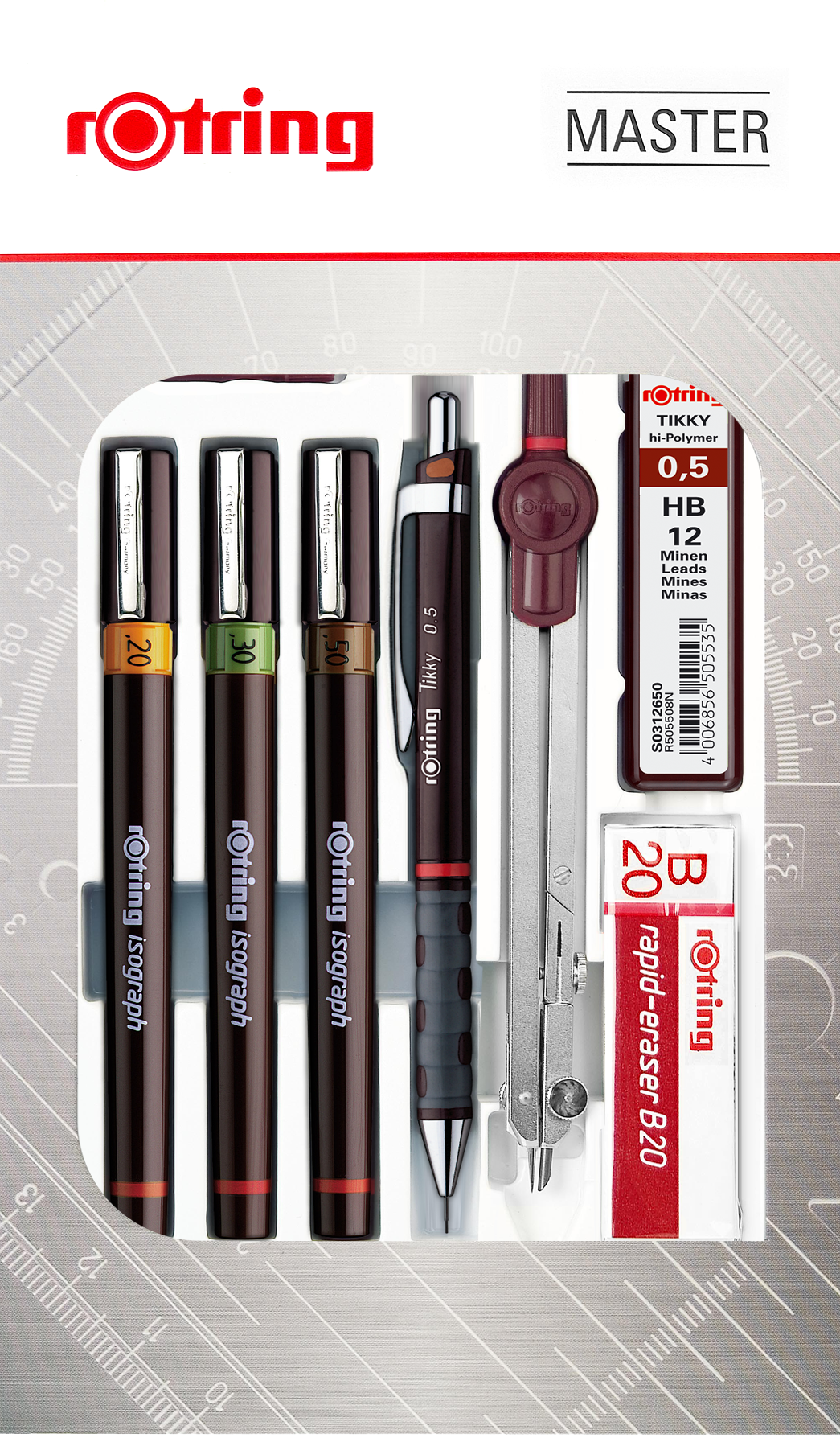 Набор изографов Master set изографы 0.5/0.3/0.2, механический карандаш, грифели, ластик, адаптор, циркуль, тушь, линейка