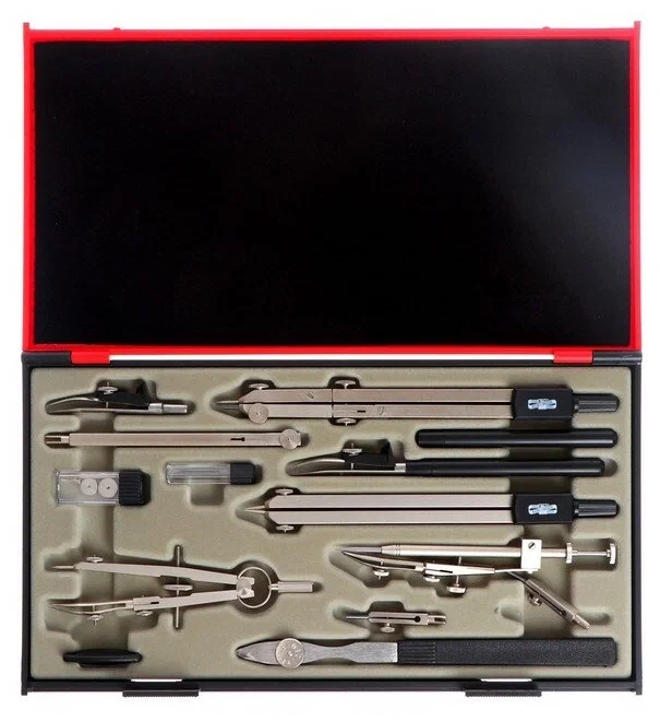 Готовальня Professional kooh-i-noor - чертежные инструменты 14 предметов, пластиковый футляр.