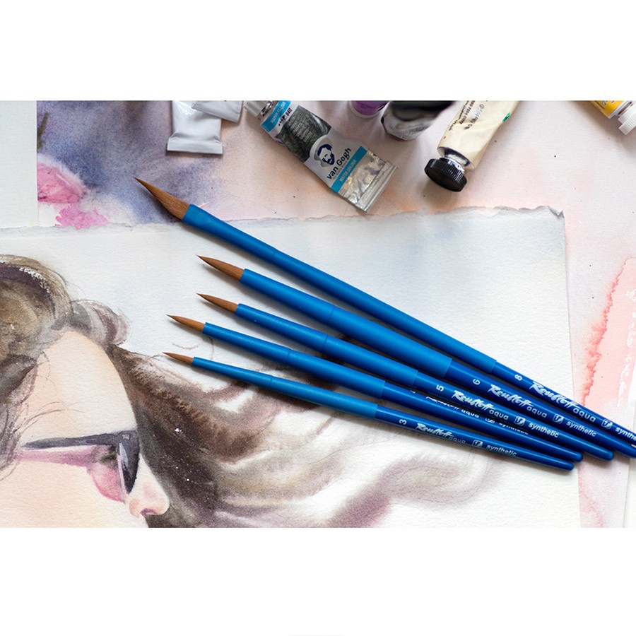 Кисть "Aqua Blue round", синтетика коричневая круглая, обойма soft-touch, ручка короткая синяя №4