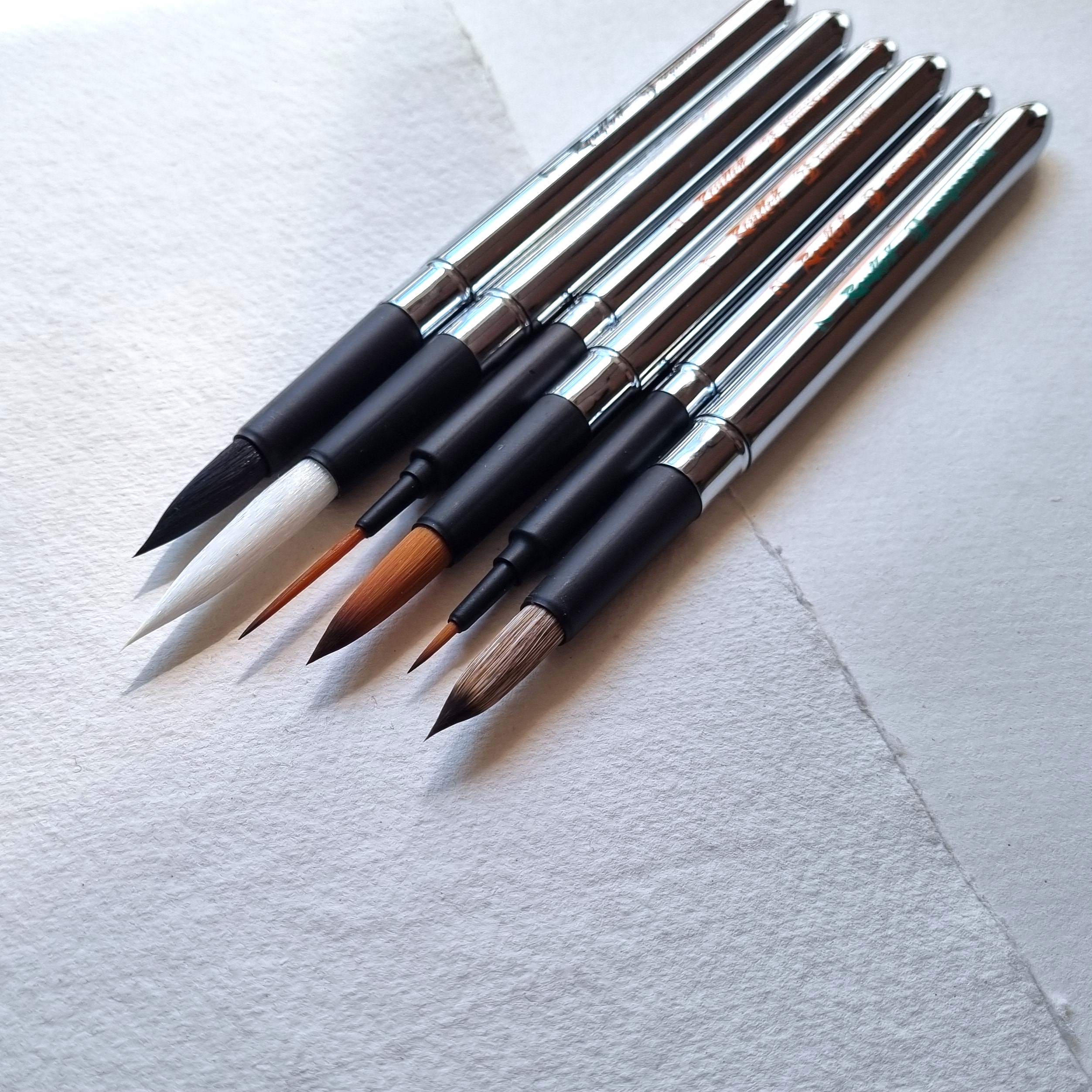 Созданы специально для быстрых скетчей водными красками, тонкий кончик делает даже объемную кисточку универсальной - одной кистью можно написать всю зарисовку от смачивания листа до детализации.Мягкое покрытие ручки soft touch делает работу комфортной, руки художника на пленэре не мёрзнут, а кисть не скользит. Серебристое хромированное покрытие обеспечивает эстетический внешний вид кисти, а также продлевает срок службы инструмента (покрытие не окисляется). В колпачке ручки имеется отверстие для вентиляции кисти, а цветная маркировка позволяет легко идентифицировать состав ворса кисти в закрытом состоянии. Ручка отбалансирована по длине и весу.