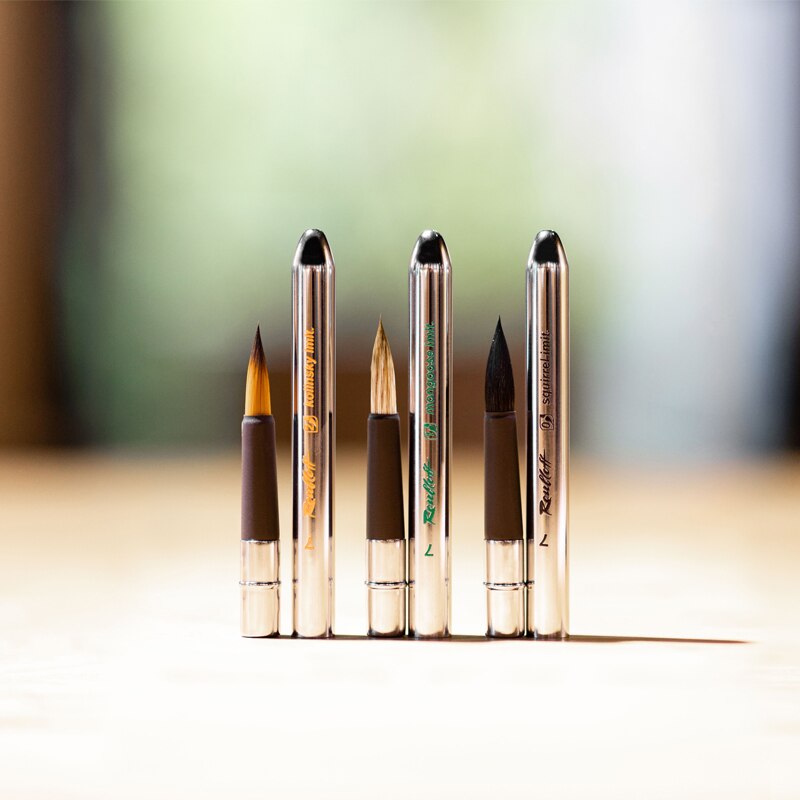 Складные travel-кисти Roubloff из волоса имитирующего ворс мангуста - мягкая, но универсальная упругая синтетика, легко набирают краску и формируются в острую вершинку, подходят для реалистичных техник и быстрых скетчей акварелью, гуашью, акрилом. Мягкое покрытие ручки soft touch делает работу комфортной, руки художника на пленэре не мёрзнут, а кисть не скользит. Серебристое хромированное покрытие обеспечивает эстетический внешний вид кисти, а также продлевает срок службы инструмента (покрытие не окисляется). В колпачке ручки имеется отверстие для вентиляции кисти, а цветная маркировка позволяет легко идентифицировать состав ворса кисти в закрытом состоянии. Ручка отбалансирована по длине и весу.