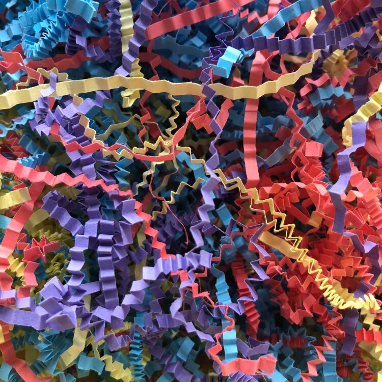 Наполнитель бумажный микс 9 (пастель желтый+интенсив красный, синий, фиолетовый) 100гр