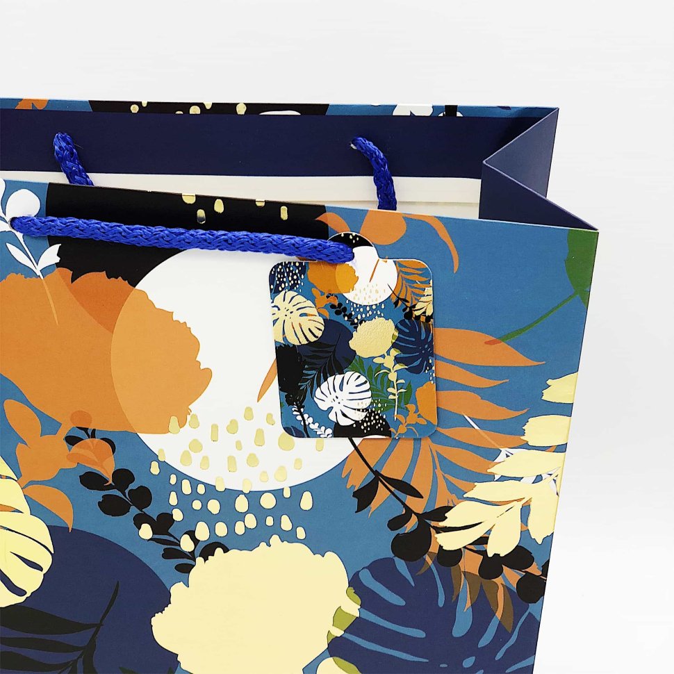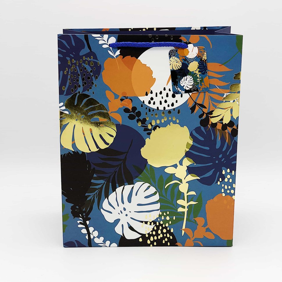 Подарочный пакет выполнен из прочной бумаги, с нанесением интересного дизайнерского принта. Ручки подарочного пакета выполнены из ткани. Размер: 26х32х12,5 см.
