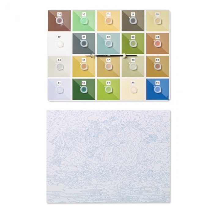 Набор "Рисование по номерам. Художественная коллекция" (художественный картон 300 х 400 мм, 20 х 3 мл акриловых красок, кисть, футляр для хранения красок, инструкции), ( с указанием номеров на картоне), мотив - Кони в воде