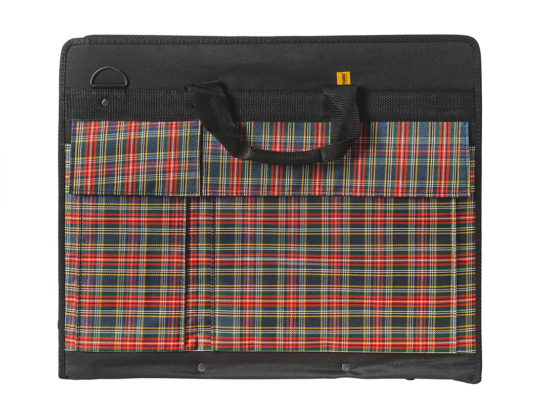 Папка "Художник" с паттерном Шотландская клетка,49x38.5x6см. Внутри папки съемная двойная перегородка. На внешней стороне два объемных кармана с клапаном, узкий 15*31 (под кисти) и широкий 49*31(формат А4). Снабжена ручками и регулируемым ремнем для переноски на плече. Цвет папки может отличаться, так как производитель может изменить ткань.