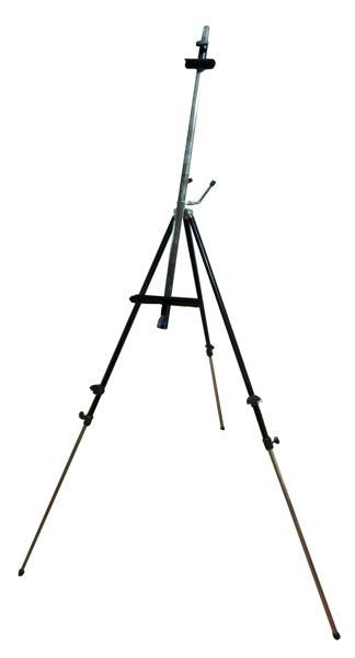 Мольберт "Тренога" металлический (стальной), 92х92х203 см. Регулировка верхнего зажима и нижней планки. Регулируемый наклон холста. Максимальная высота холста 130см. Вес мольберта 2.3кг