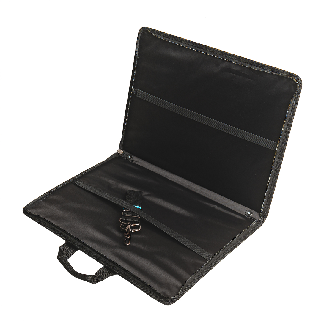Папка снабжена ручками и регулируемым ремнем для переноски на плече.