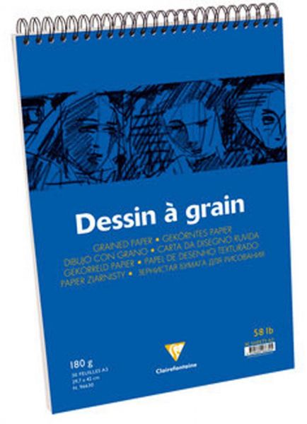 Блокнот Dessin a grain для черчения и рисования, белая зернистая бумага, 29,7х42 см, на спирали, 30 листов, 180 гр. , для работы карандашом, сангиной, углем, тушью, акварелью и гуашью