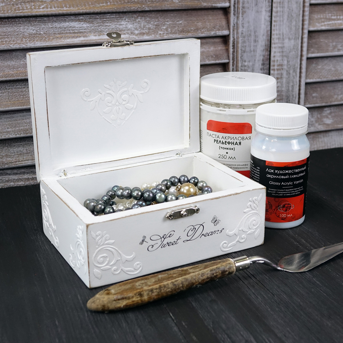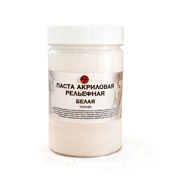 Рельефная акриловая паста представляет собой водорастворимую смесь акриловой смолы и тонкомолотого мрамора.
