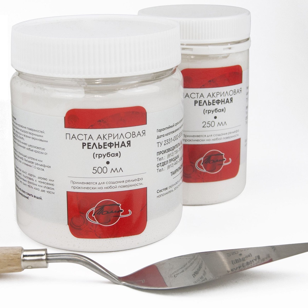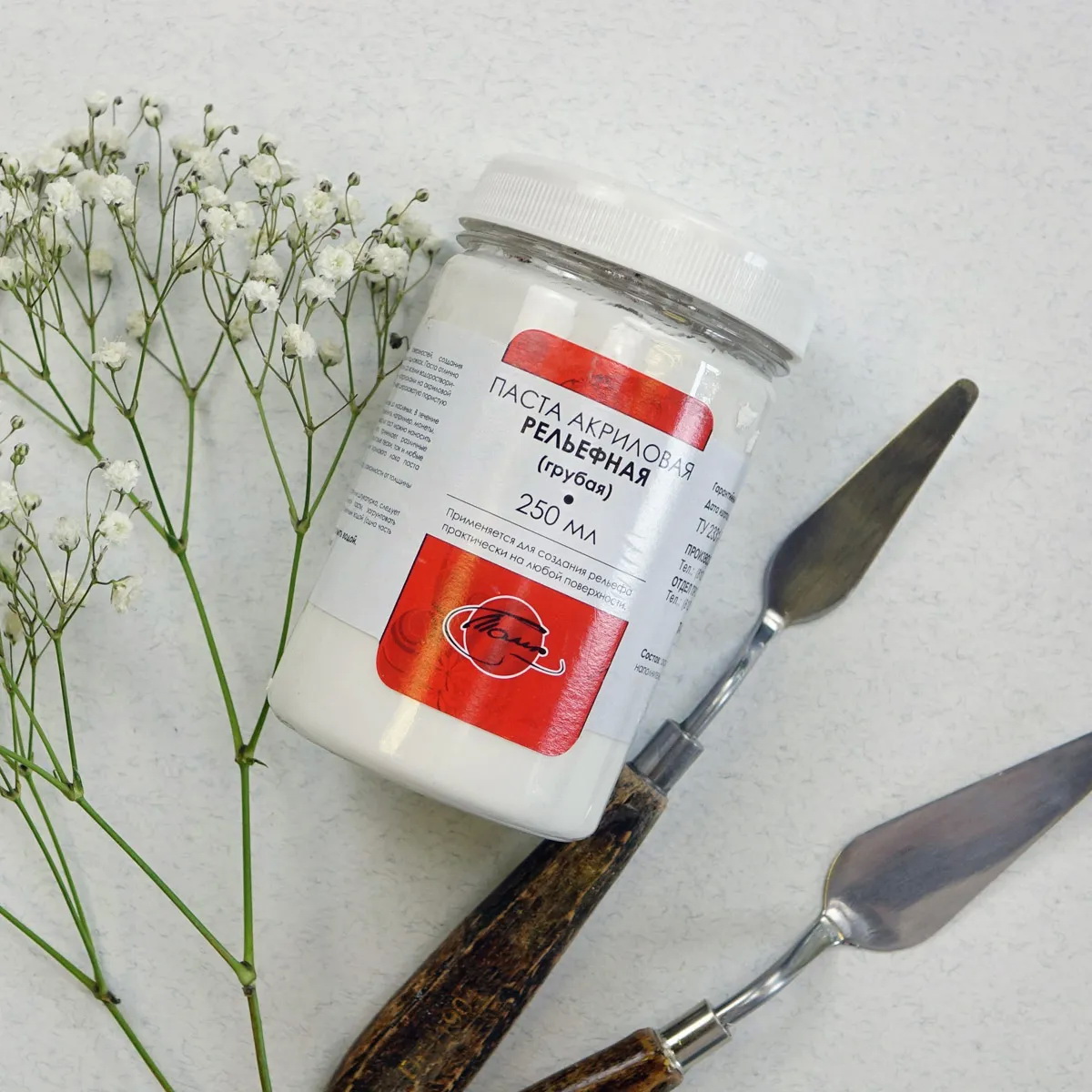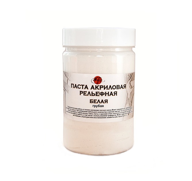 Рельефная акриловая паста представляет собой водорастворимую смесь акриловой смолы и тонкомолотого мрамора.