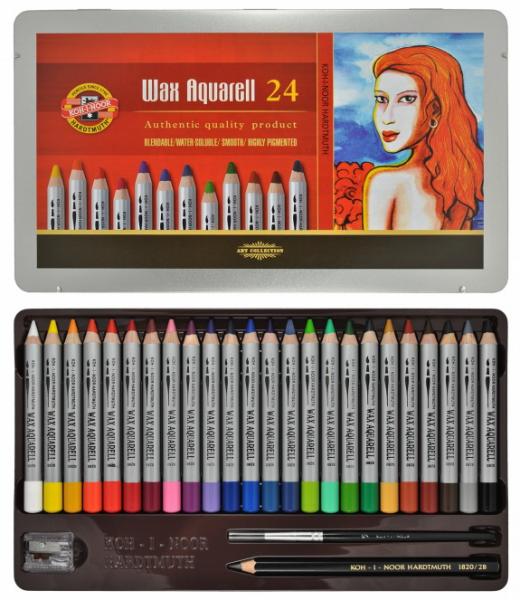 Пастель восковая 24 цв. акварельная в карандашах d=11mm, металлический пенал