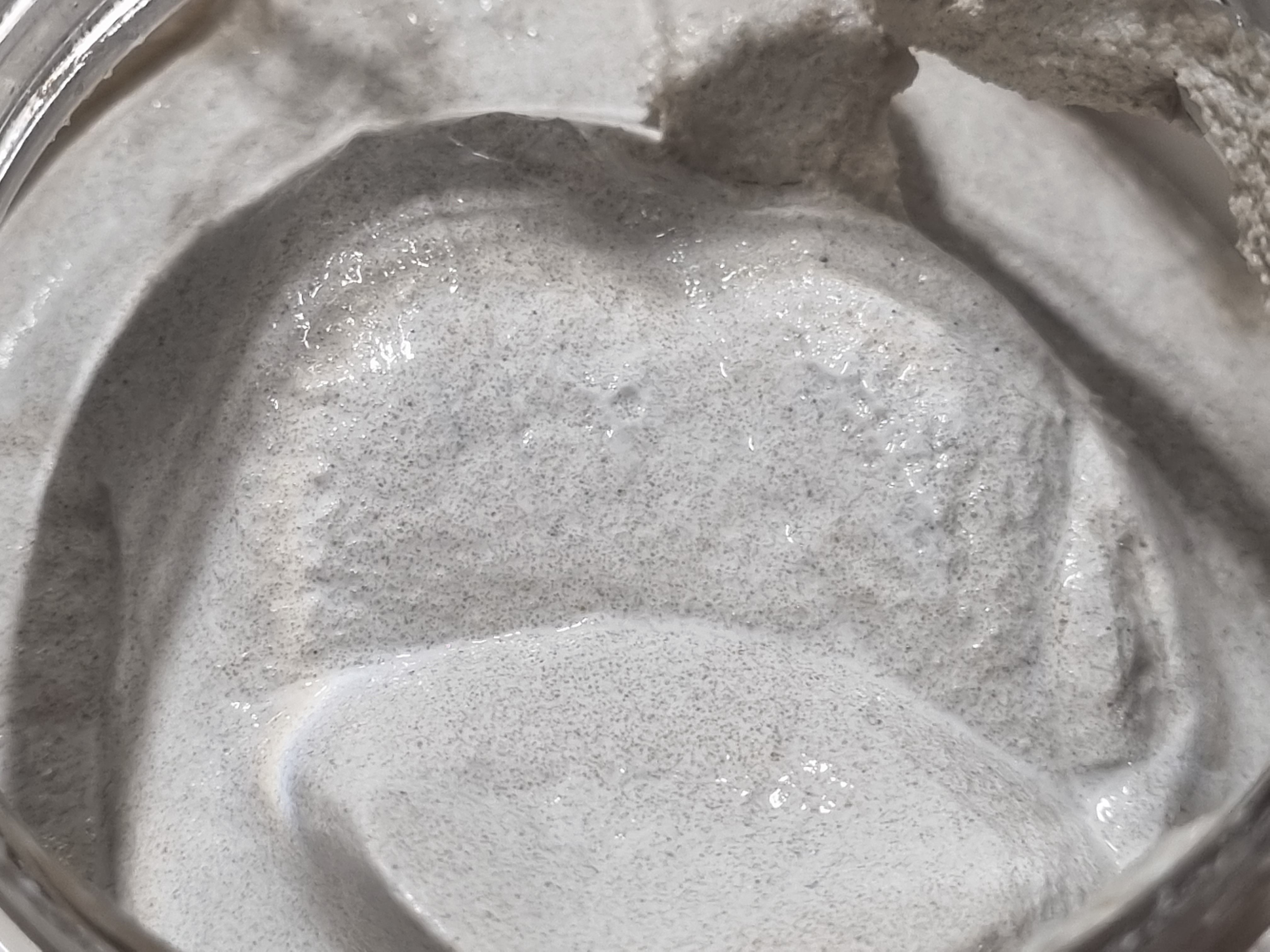 В составе пасты песок, который и придает поверхности натуральную песчаную структуру, а самой пасте - немного кремовый оттенок.
