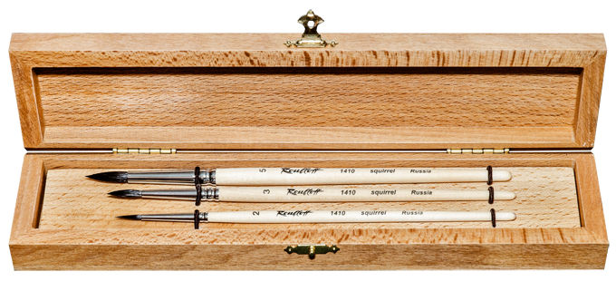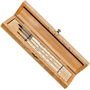Набор кистей из ворса белки в деревянном пенале.