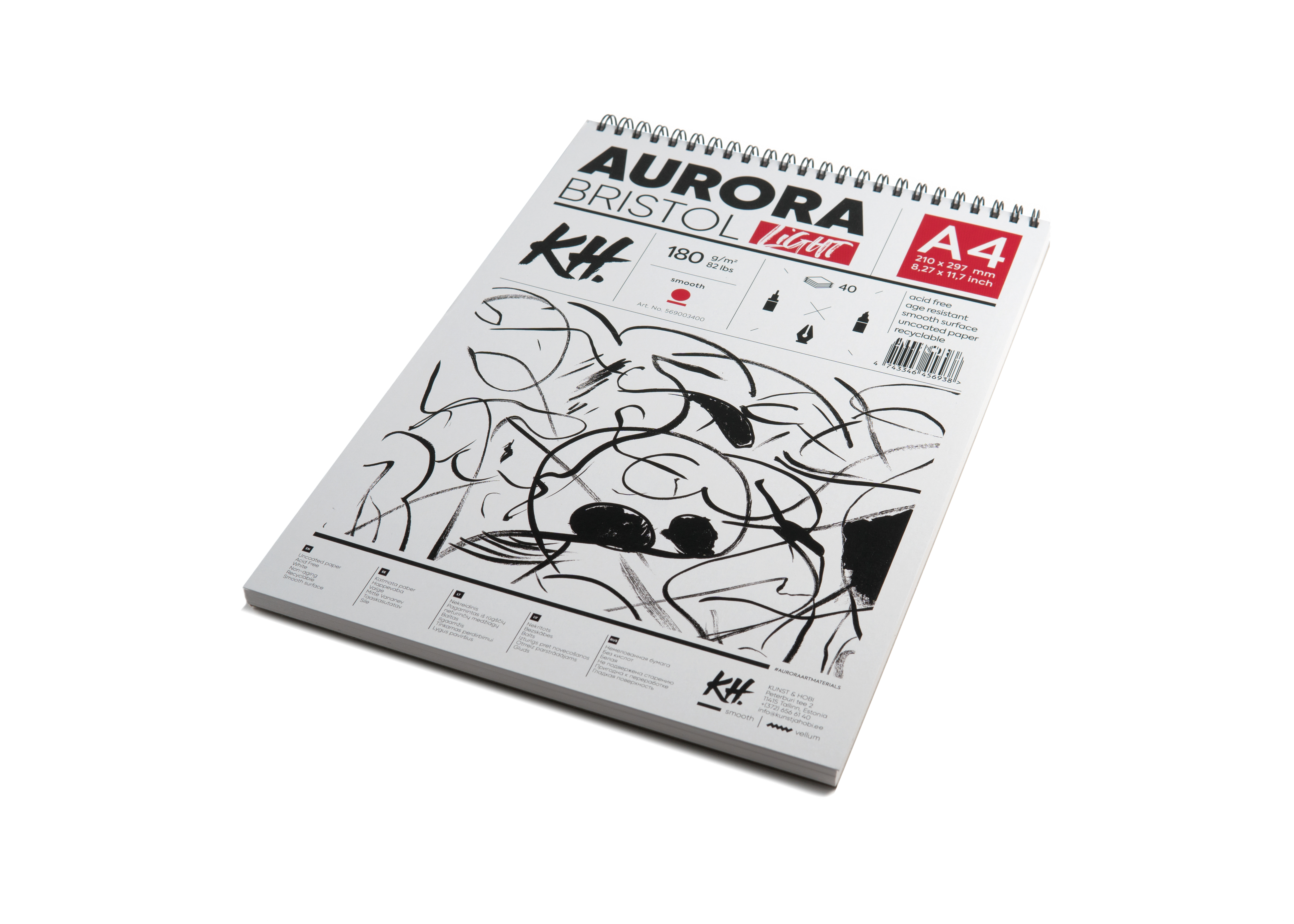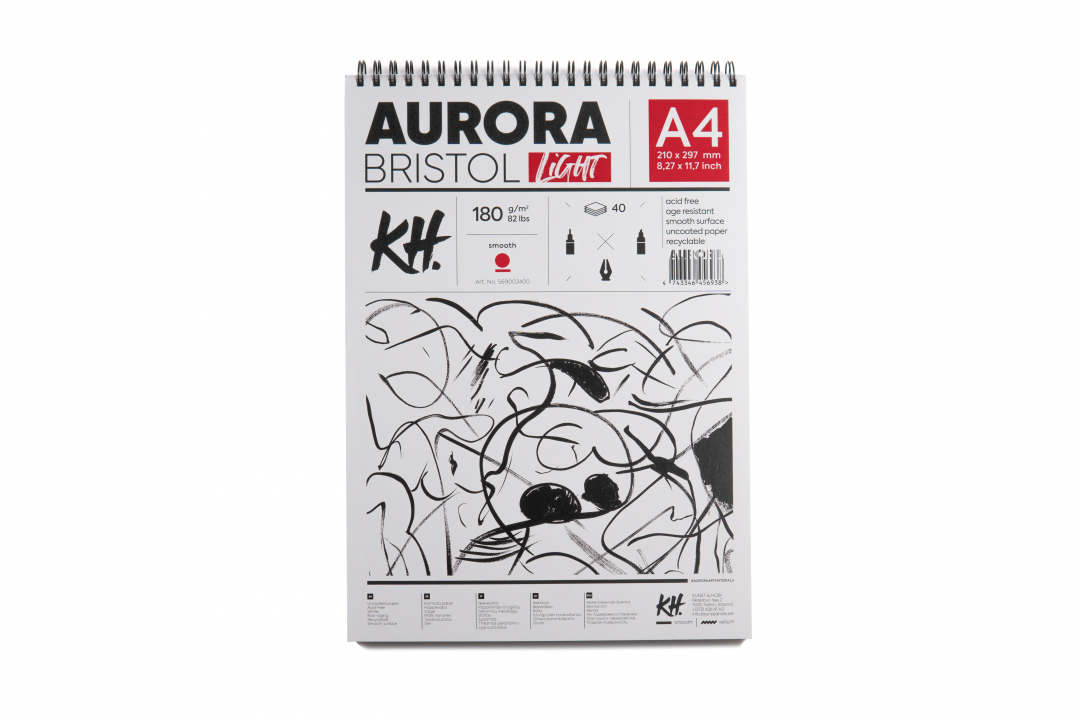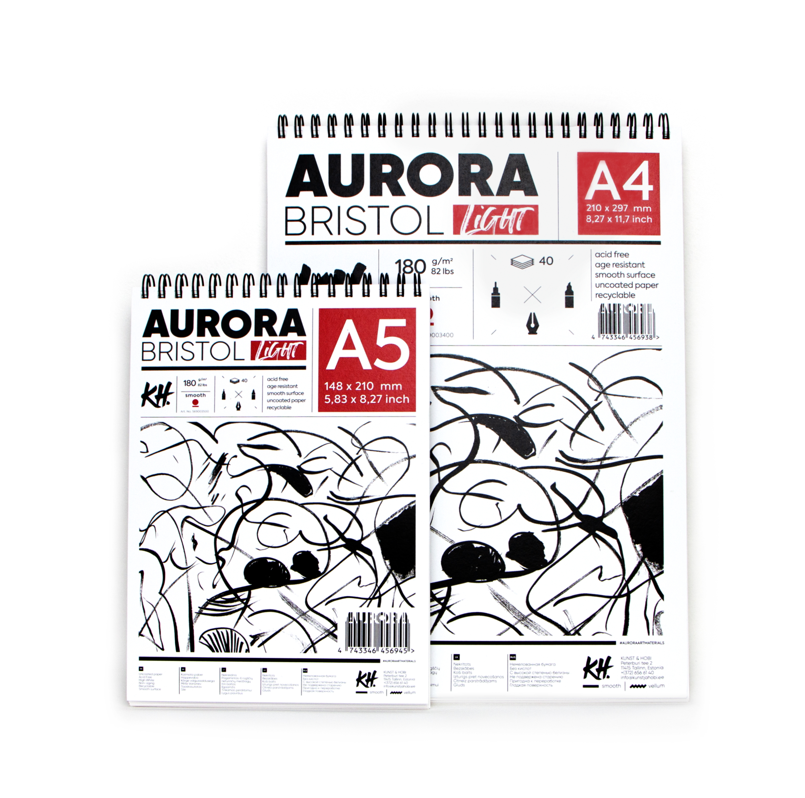 Альбом для графики на спирали Aurora Bristol А4 40 листов, 180 г/м² гладкий, альбомная ориентация
