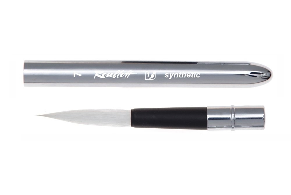 Серебристое хромированное покрытие защищает ворс от заминания и продлевает срок службы инструмента. В колпачке ручки имеется отверстие для вентиляции кисти. Ручка отбалансирована по длине и весу.