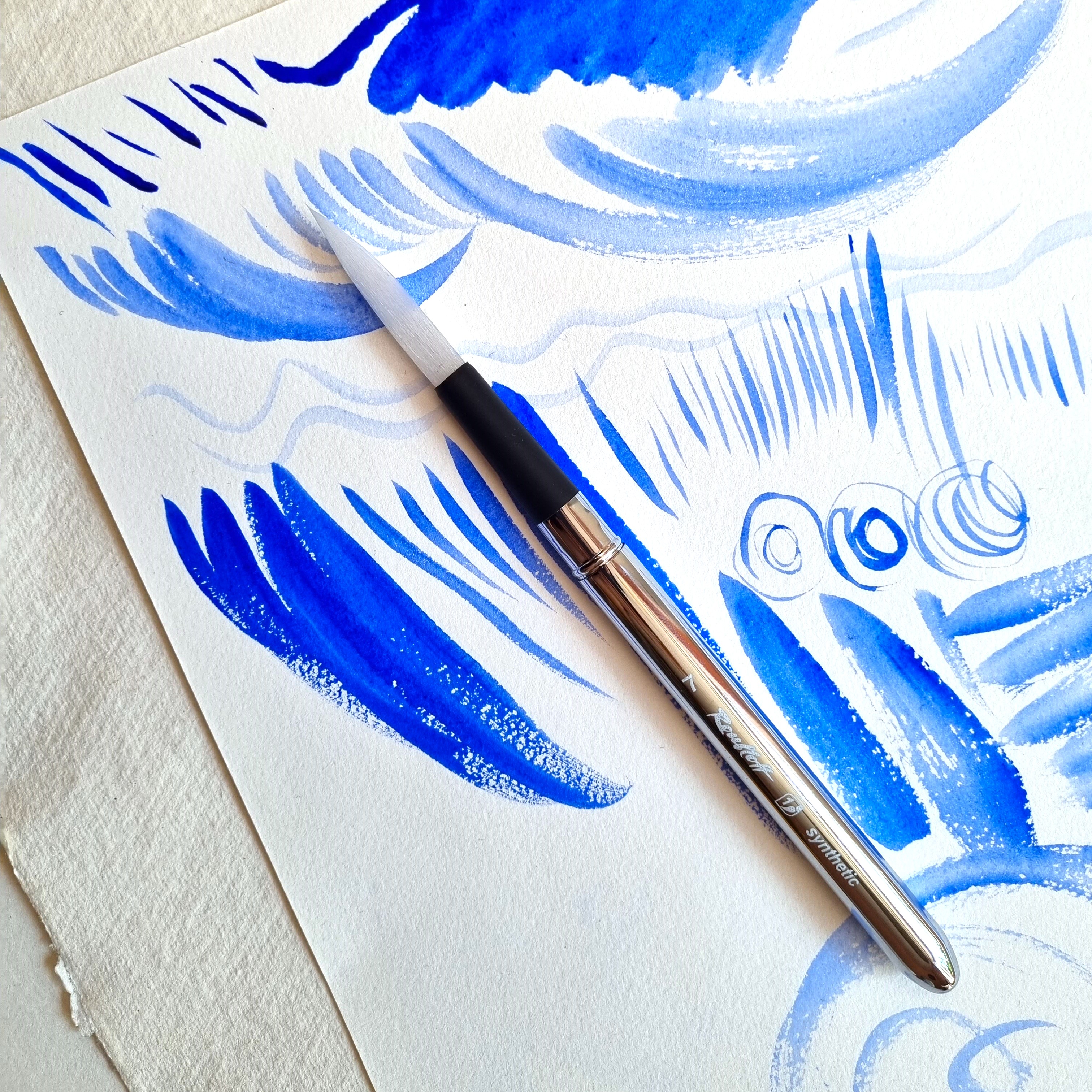 Кисть подходит для заливок, штриховки, длинных каллиграфических линий, фактур, работы с деталями.
