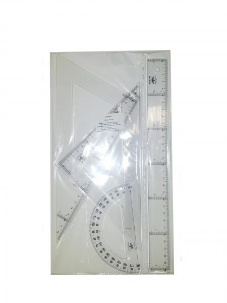 Линейка 30 см. Угольник 45°/45° и 60°/30° 25 см. Транспортир 180° 13 см.
