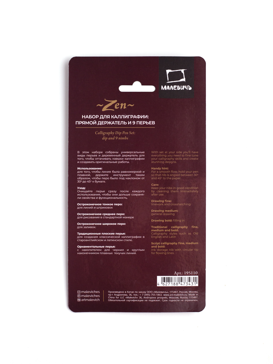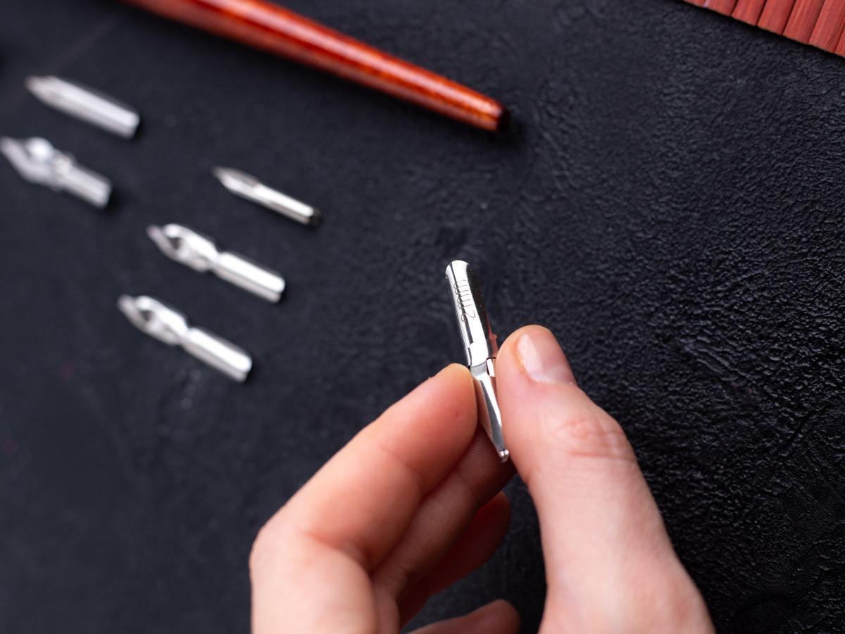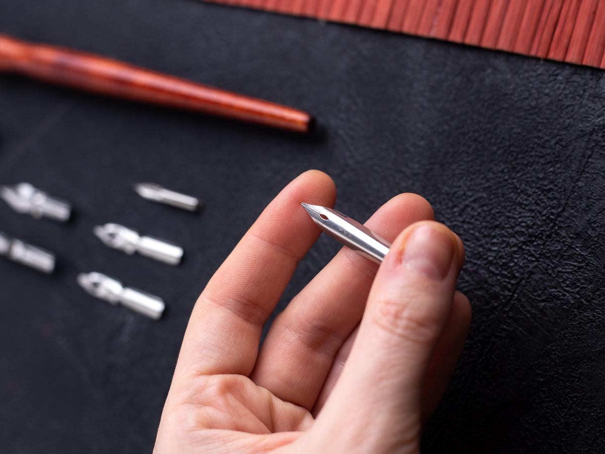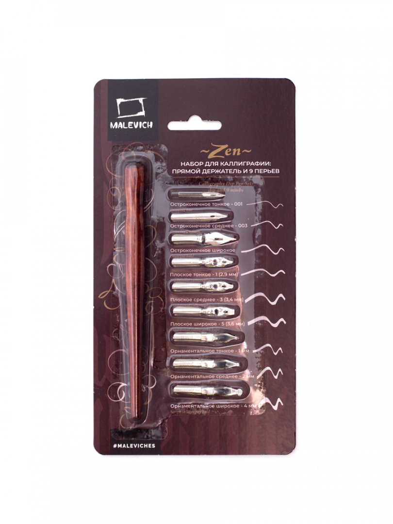 В набор для каллиграфии входят 9 металлических перьев и прямой держатель, который удобен для рисования и каллиграфии тушью и чернилами.