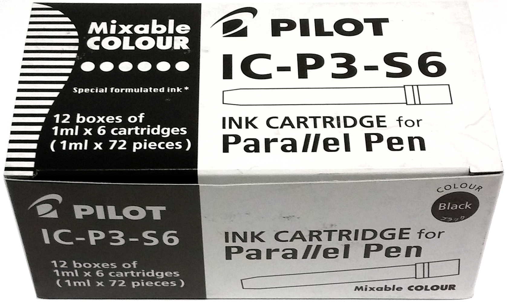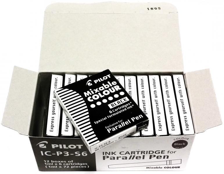 Упаковка из 12шт по 6 картриджей (72 картриджа) для Pilot Parallel Pen, черные