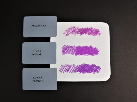 Масляная пастель сильно отличается от сухой и по ощущению и по финишу. Не оставляет пыли, меньше пачкается. Считается, что ей легче управлять. С помощью такой пастели сложнее добиться «реализма», зато сочность цветов делает эту пастель незаменимой для графичной и выразительной художественной составляющей.