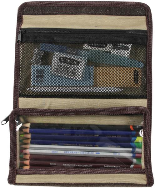 Футляр для художественных принадлежностей и аксессуаров, без наполнения, холщовая ткань (размер в открытом виде 260 мм х 200 мм х 20 мм, размер в сложенном виде - 115 мм х 200 мм х 20 мм)