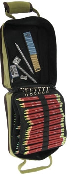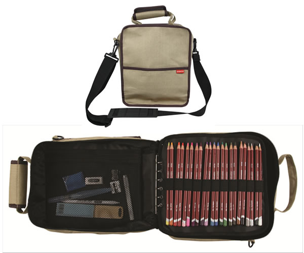 Сумка для карандашей (132 шт.) и аксессуаров, без наполнения. Предназначена для хранения и транспортировки 132 карандашей + аксессуары + блокнот формата A5. Сумка имеет ремень для ношения на плече, 2 ручки для переноски в руках, удобный внешний карман. Размер упаковки: 325мм*250мм*45мм. Масса упаковки: 499 грамм.